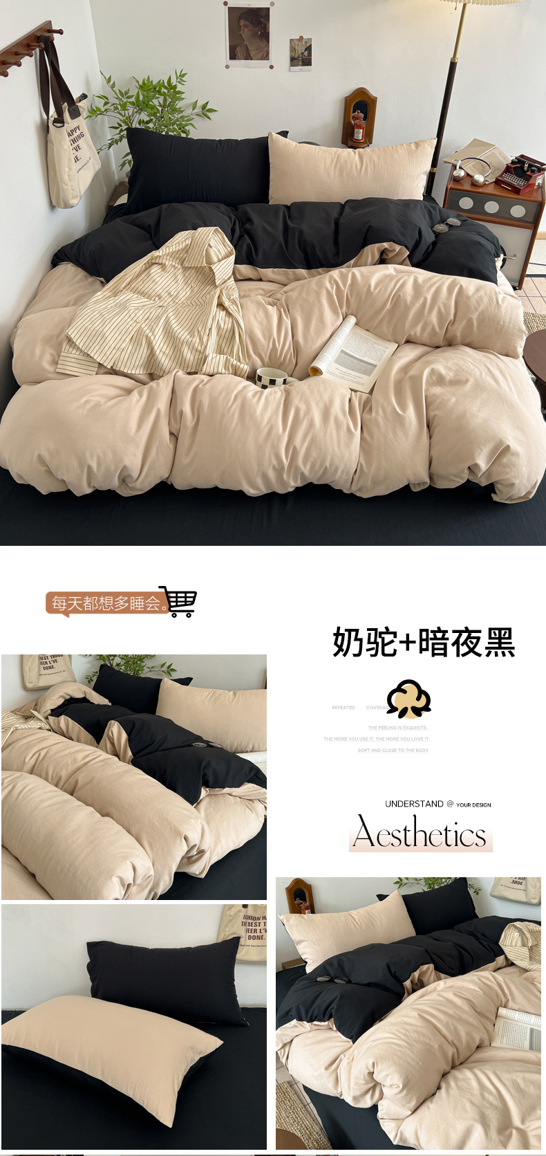 当前位置: 91家纺网 > 商品网购 > 床品套件 > 四件套 > 化纤普通四件套 > 梦嘉居 2026新款亲肤纯色AB版水洗皱皱棉四件套学生宿舍床单床笠三件套 奶驼+暗夜黑