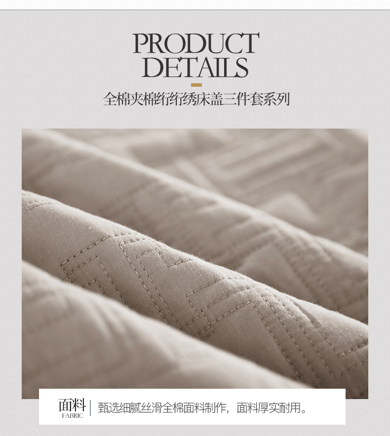 商品名称:(总)优乐家纺 2026新款双面全棉斜纹绗绣加厚床盖(夏被加厚保暖床单)唐顿系列三件套
