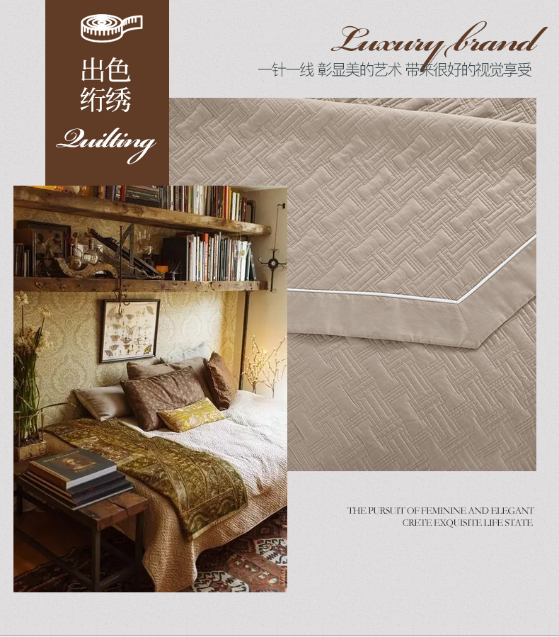 (总)优乐家纺 2026新款双面全棉斜纹绗绣加厚床盖(夏被加厚保暖床单)唐顿系列三件套
