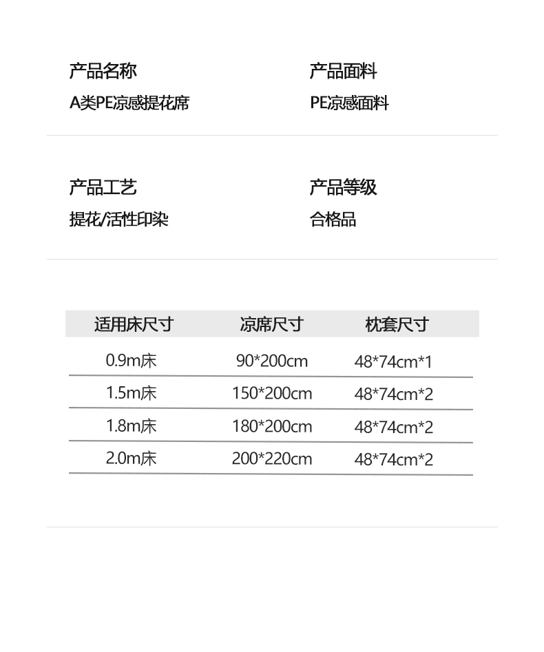 1.8×2m凉席+枕套2只 | ¥70.00 |