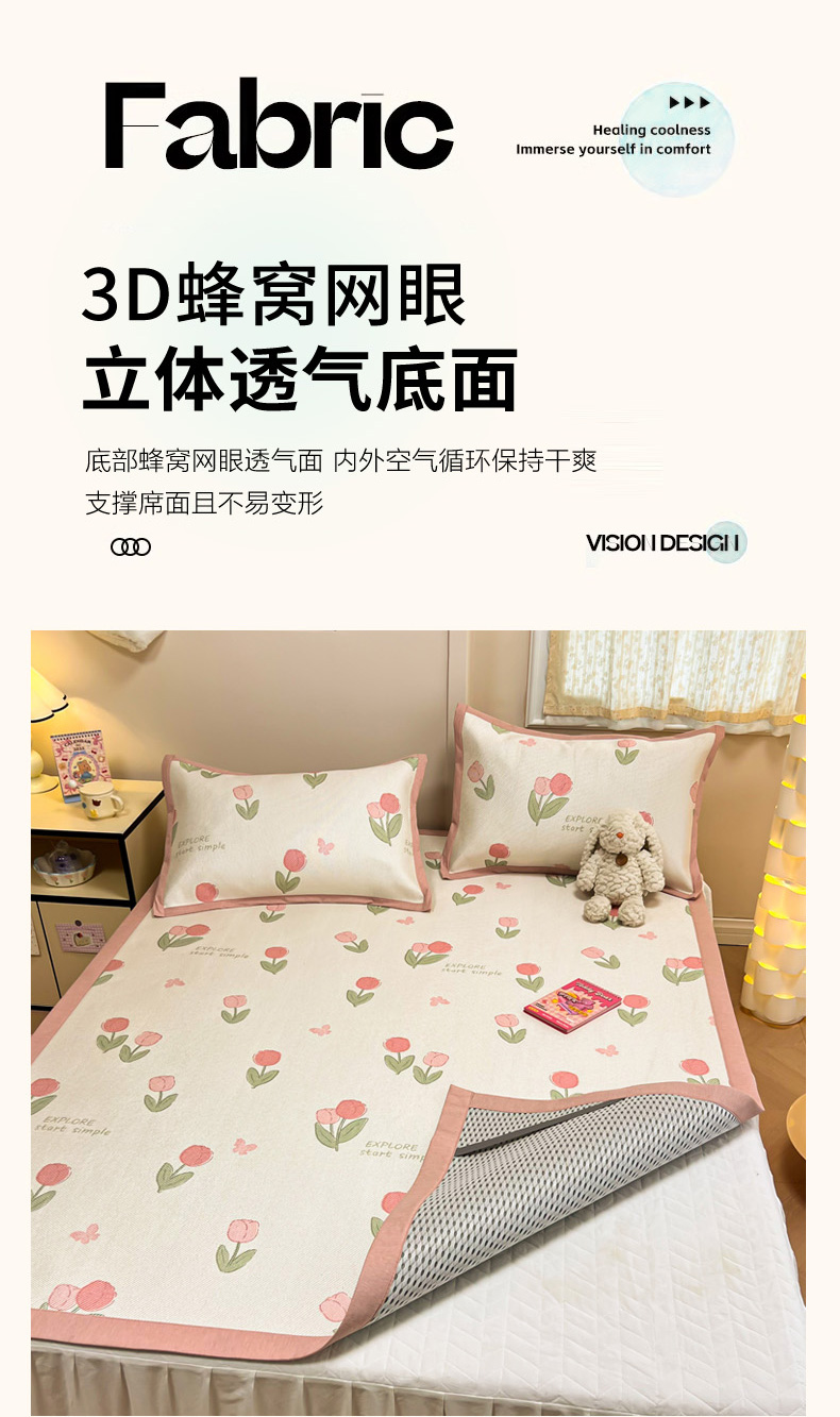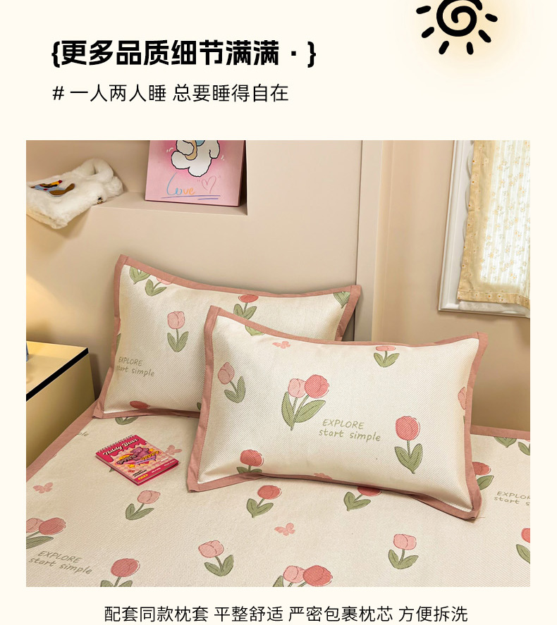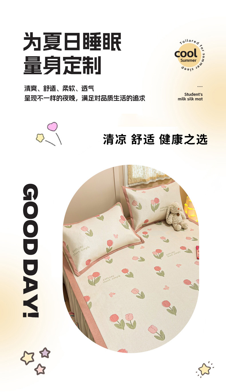 (总)沐慕 2026新款小清新凉感丝乳胶凉席三件套,爱心小兔,花花粉兔,萌萌鸭,萌宠礼物,豹纹小兔,萝莉猫,腊肠狗,粉格帽宠,三小只,森系兔,碎花小猫,糖果甜梦园,天使星星人,晚安拼格猫,樱桃萌猫,郁金香,云朵小熊
