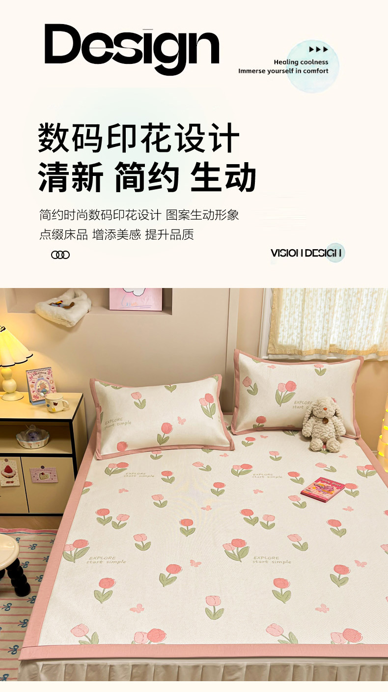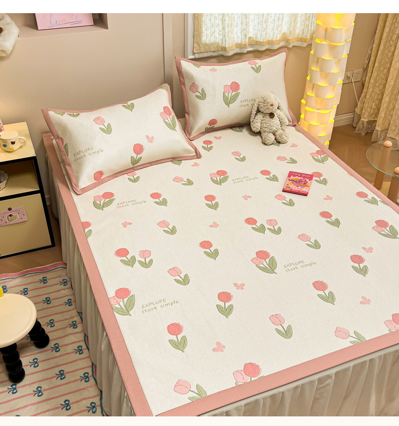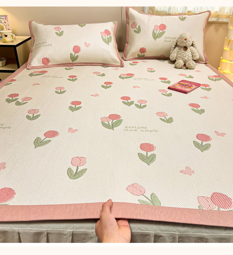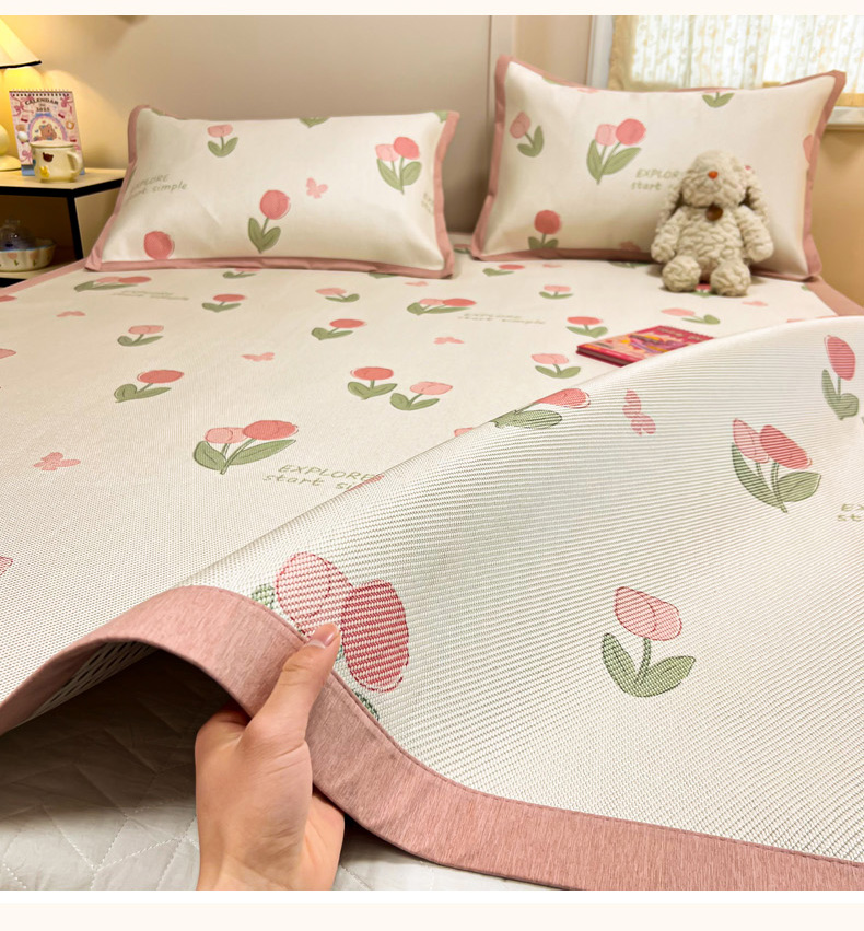 沐慕 2026新款高克重600D冰丝印花冰藤席 冰藤-粉嫩郁金香