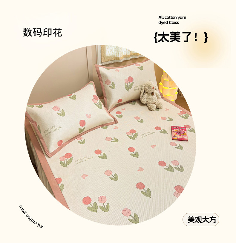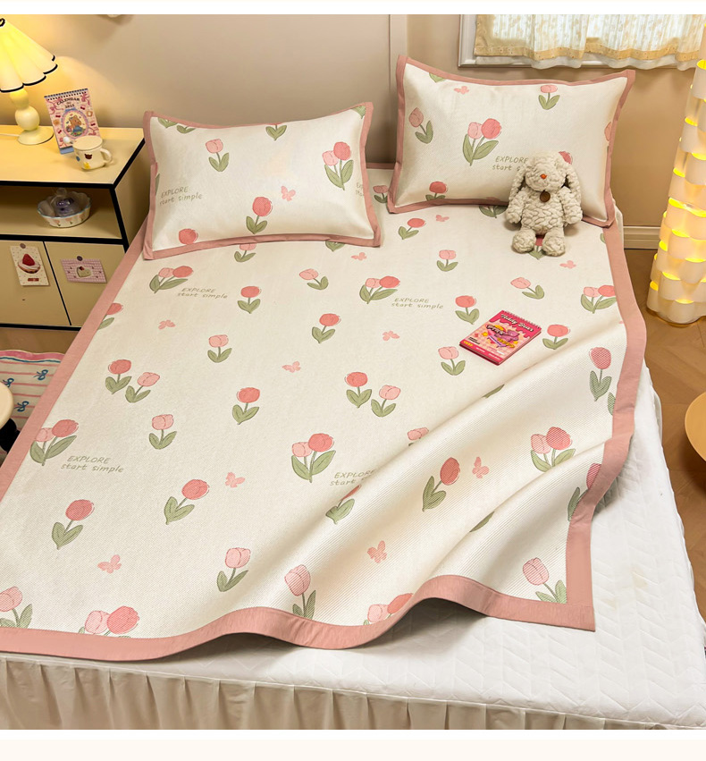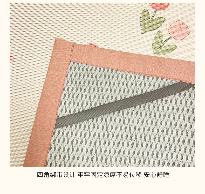 商品名称:沐慕 2026新款高克重600D冰丝印花冰藤席 冰藤-粉嫩郁金香