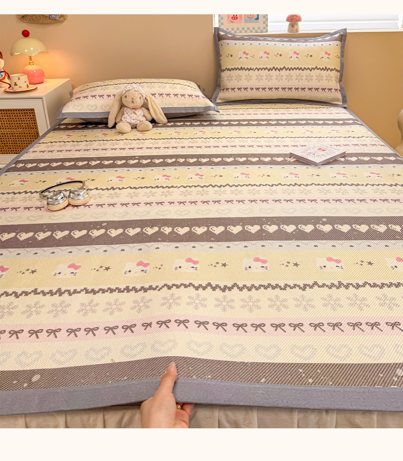 (总)沐慕 2026新款小清新凉感丝乳胶凉席三件套,爱心小兔,花花粉兔,萌萌鸭,萌宠礼物,豹纹小兔,萝莉猫,腊肠狗,粉格帽宠,三小只,森系兔,碎花小猫,糖果甜梦园,天使星星人,晚安拼格猫,樱桃萌猫,郁金香,云朵小熊