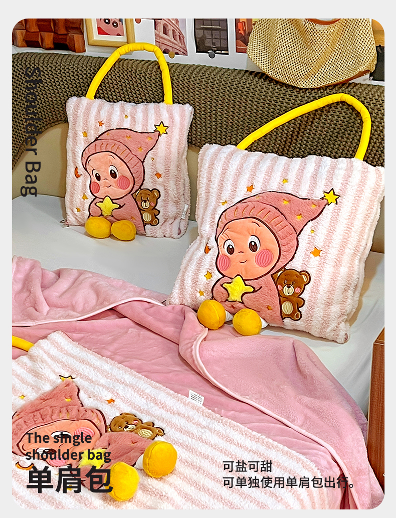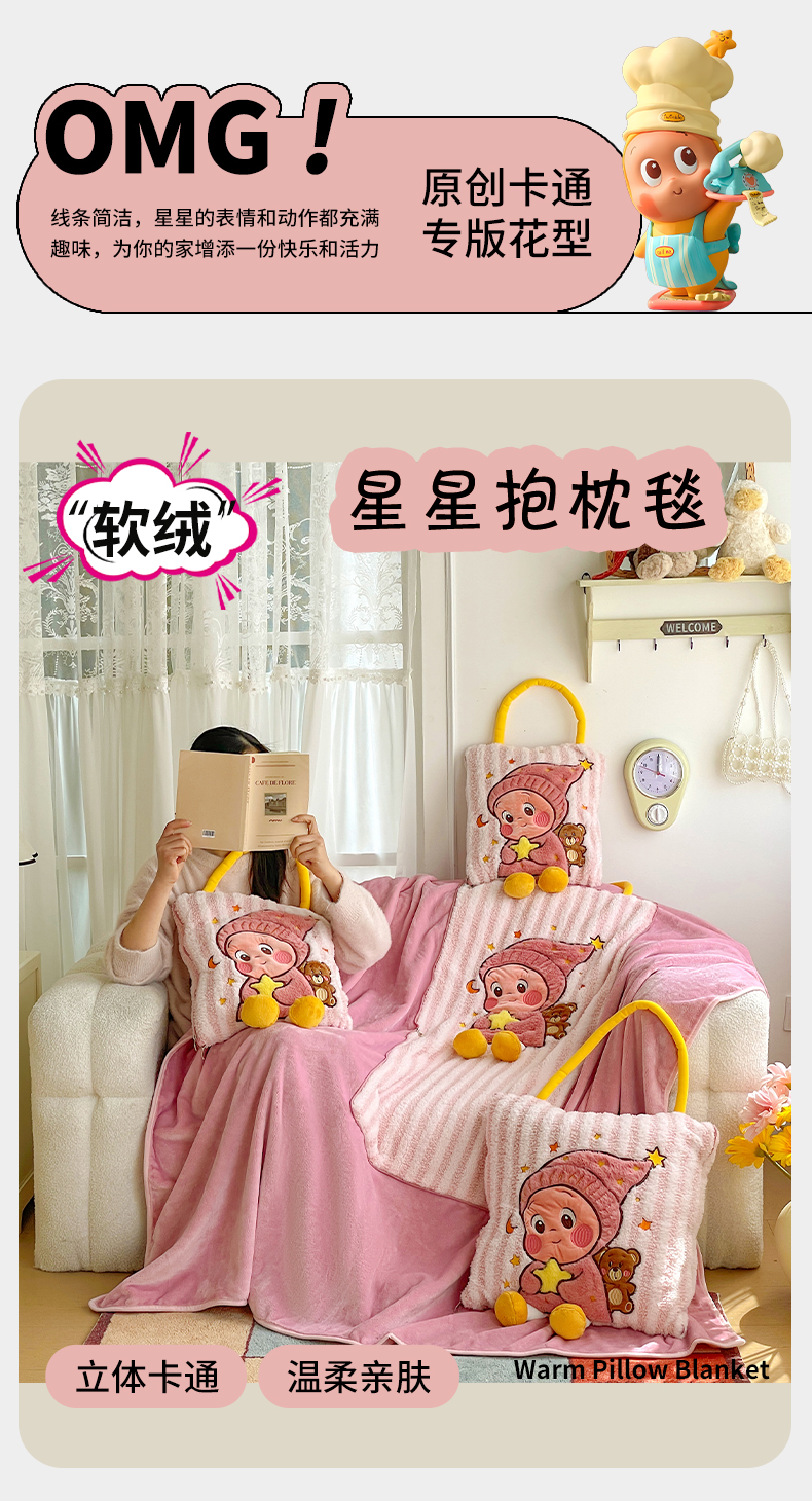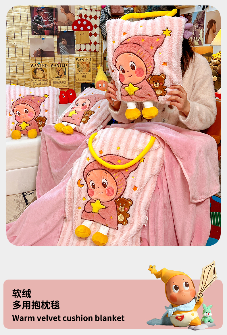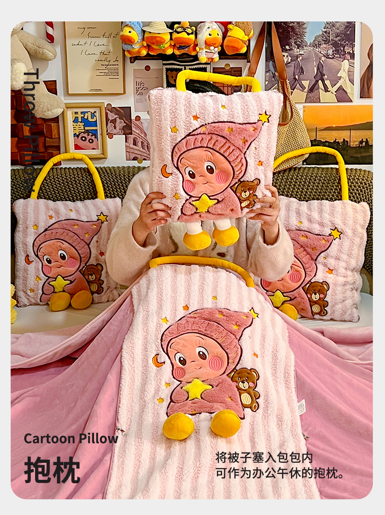 (总)古本家居 2026春夏新款多巴胺网红风星星抱枕毯,星星抱枕毯粉小宝,星星抱枕毯黄小宝,星星抱枕毯蓝小宝