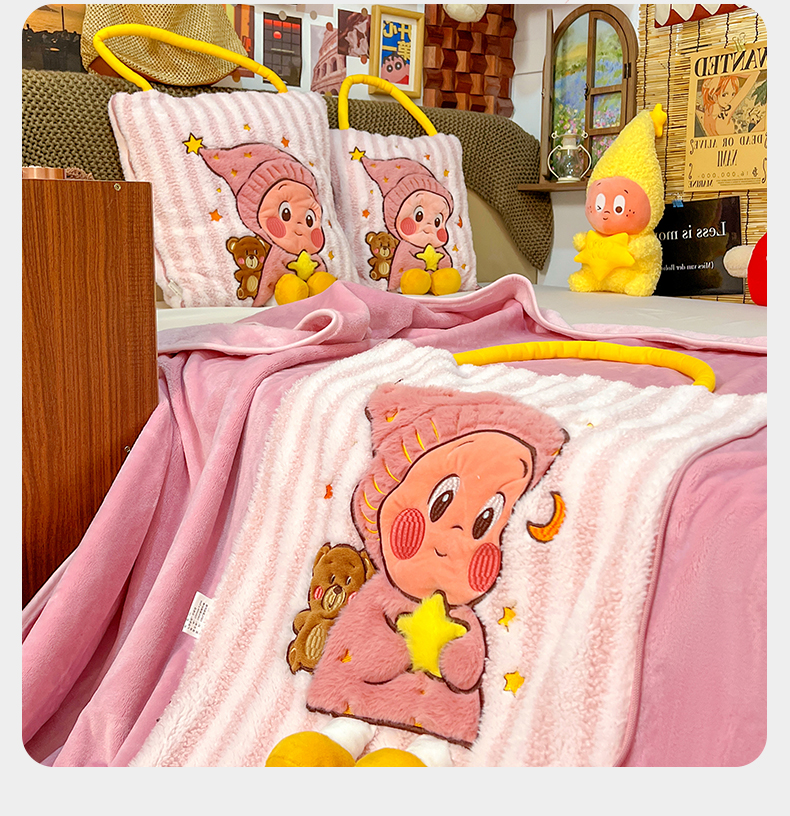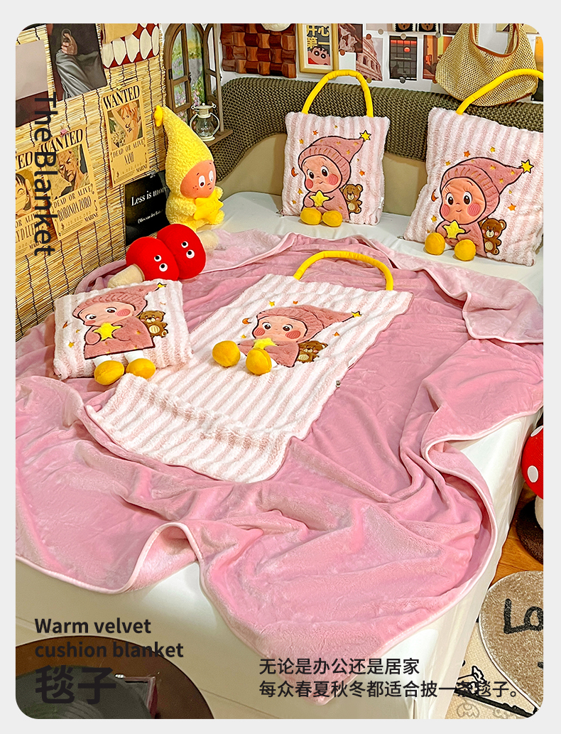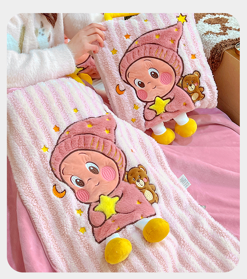 商品名称:古本家居 2026春夏新款多巴胺网红风星星抱枕毯 星星抱枕毯粉小宝