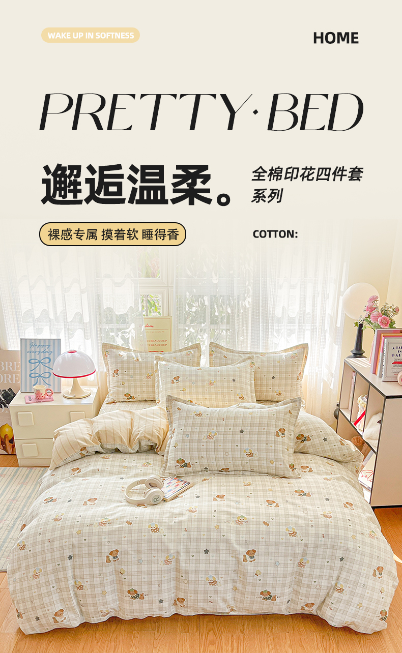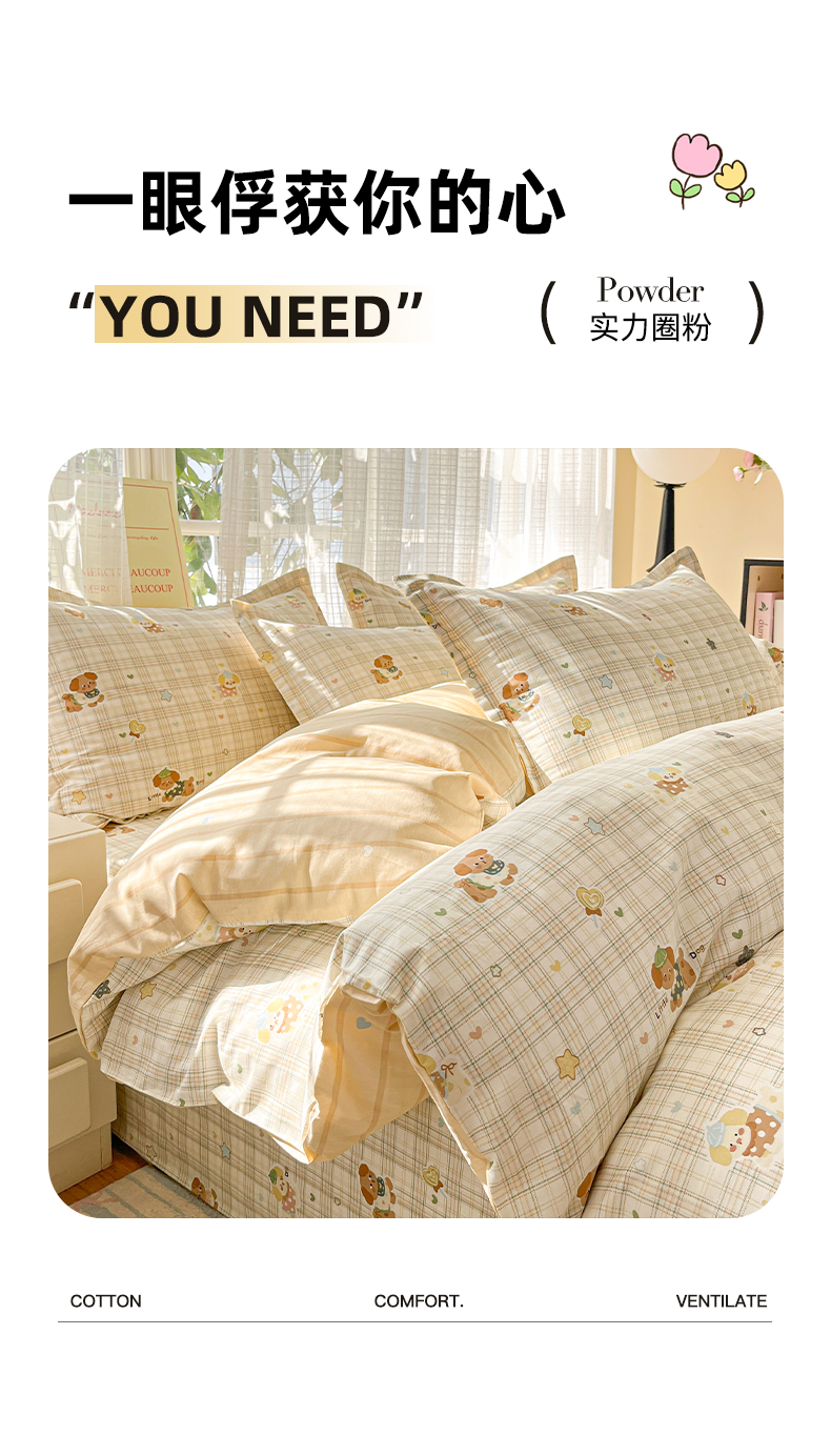 (总)好亿来家纺 2025新款全棉纯棉印花小清新四件套,爱达拉-灰,安东尼-灰,巴克曼,布里克,迪克奥莱,都市花绣,费城时光,格子草莓,故事小黄花,花宠乐章-蓝,花都小熊,花漾星辰,花艺清梦-蓝,爵士氛围,灵动小兔,浅影摇曳,趣味星空,塞维利亚,甜桔,小熊猫,寻叶,知意花蔓