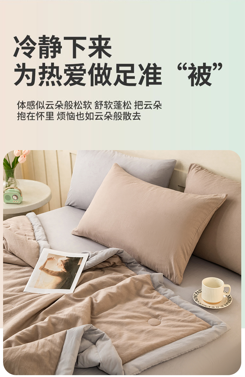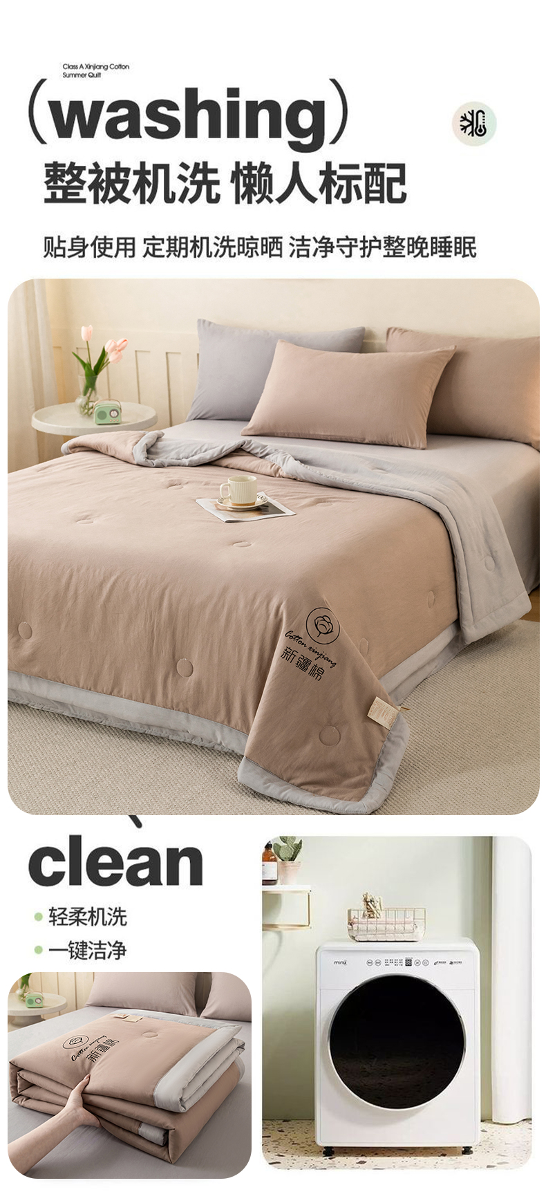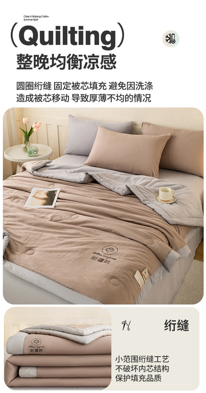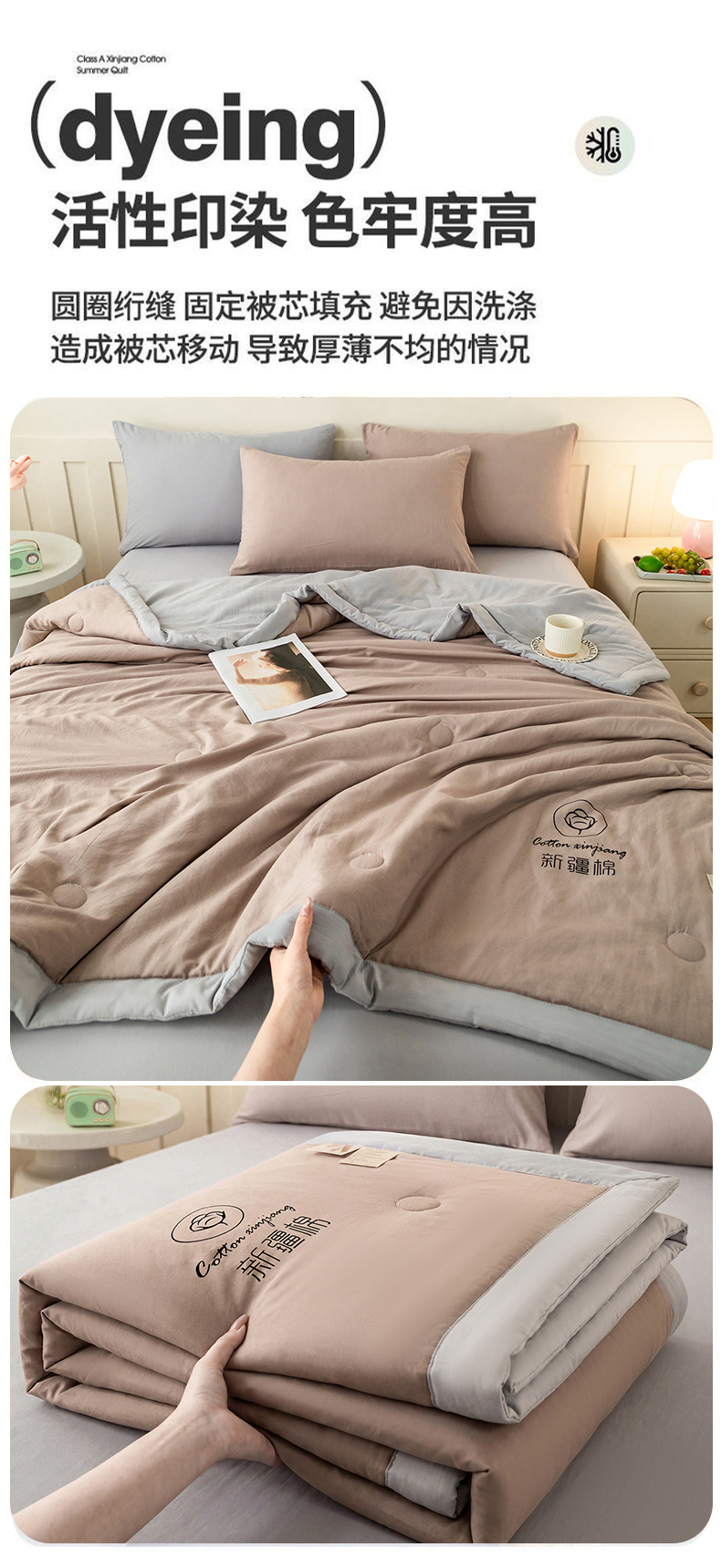 商品名称:安琪家纺 2026春夏新款A类新疆棉花纯色撞色双拼夏被夏凉被空调被 双拼-卡其灰