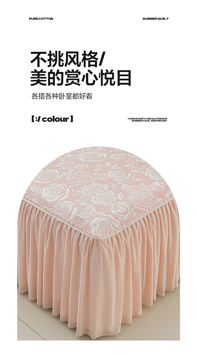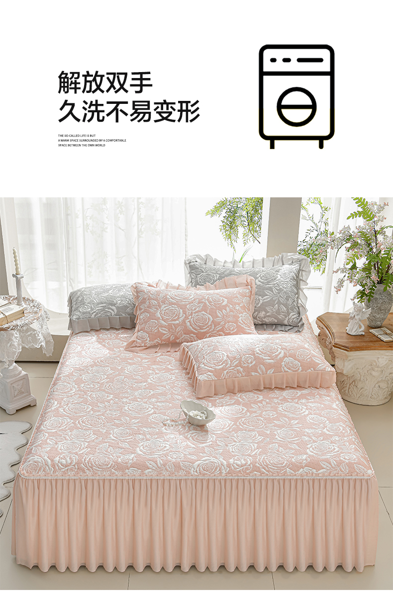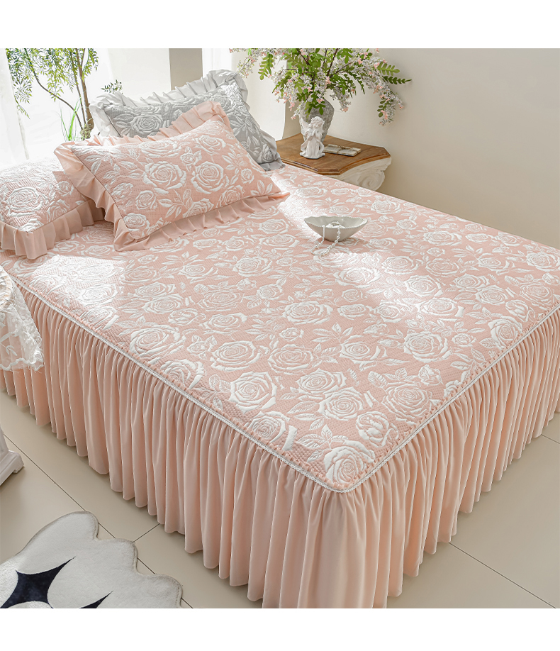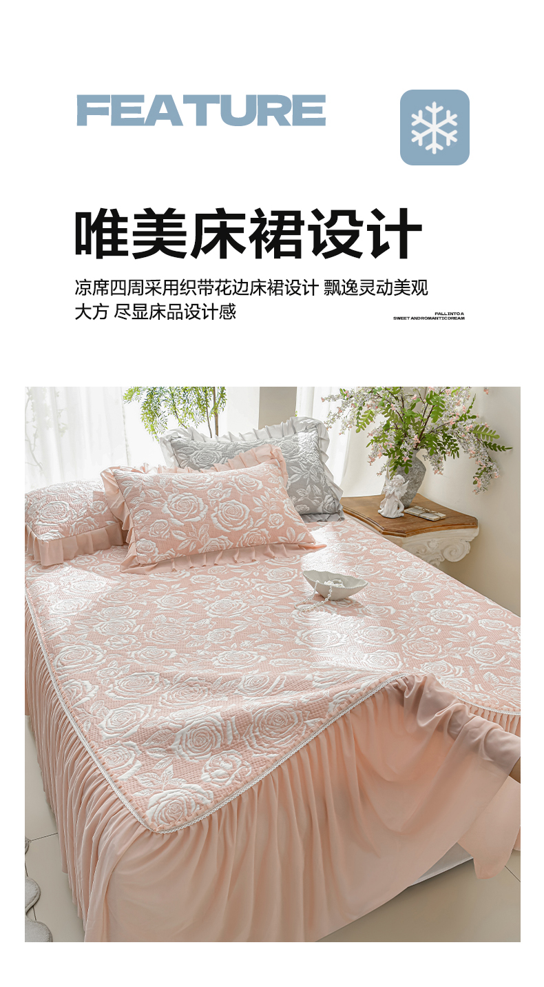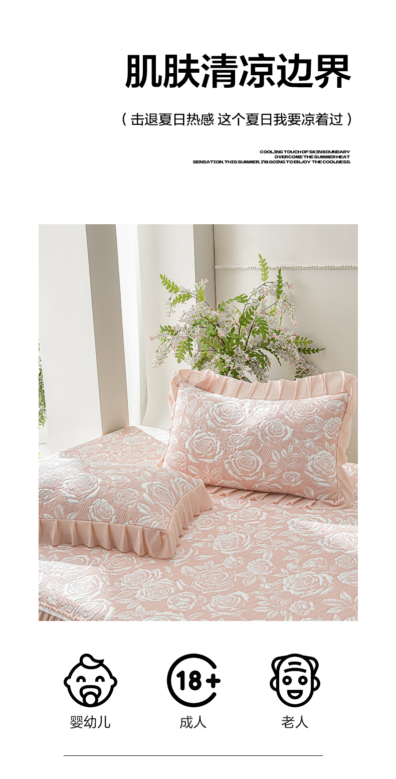 商品名称:绘萱家居 2026春夏新款530克PE100%提花冰凉豆豆床裙款凉席席子空调软席 玫瑰花香-粉