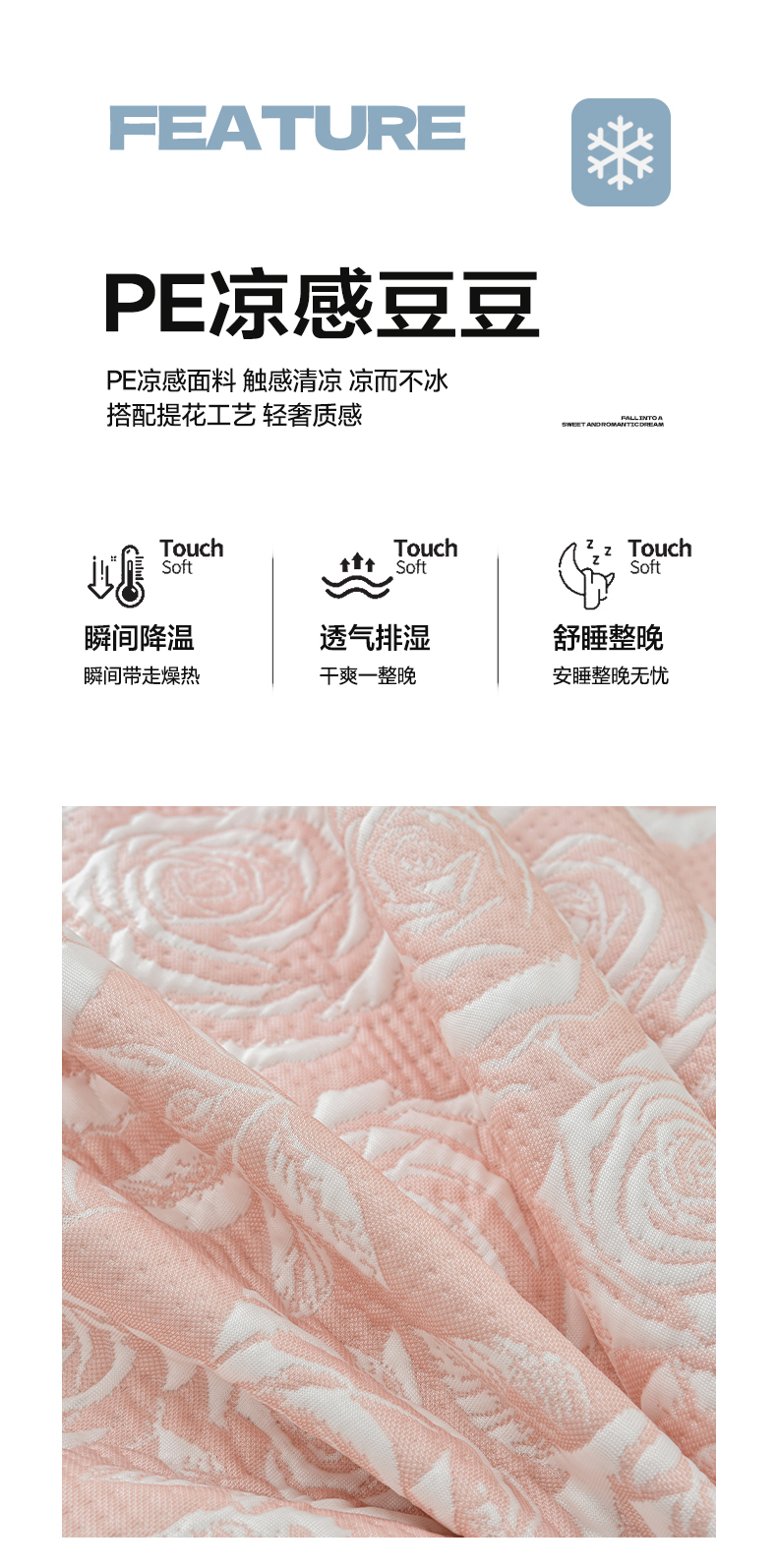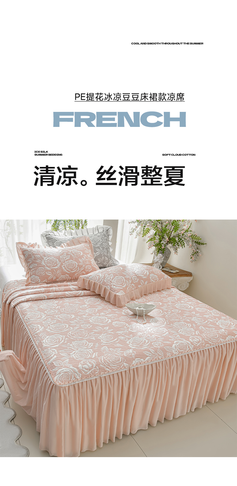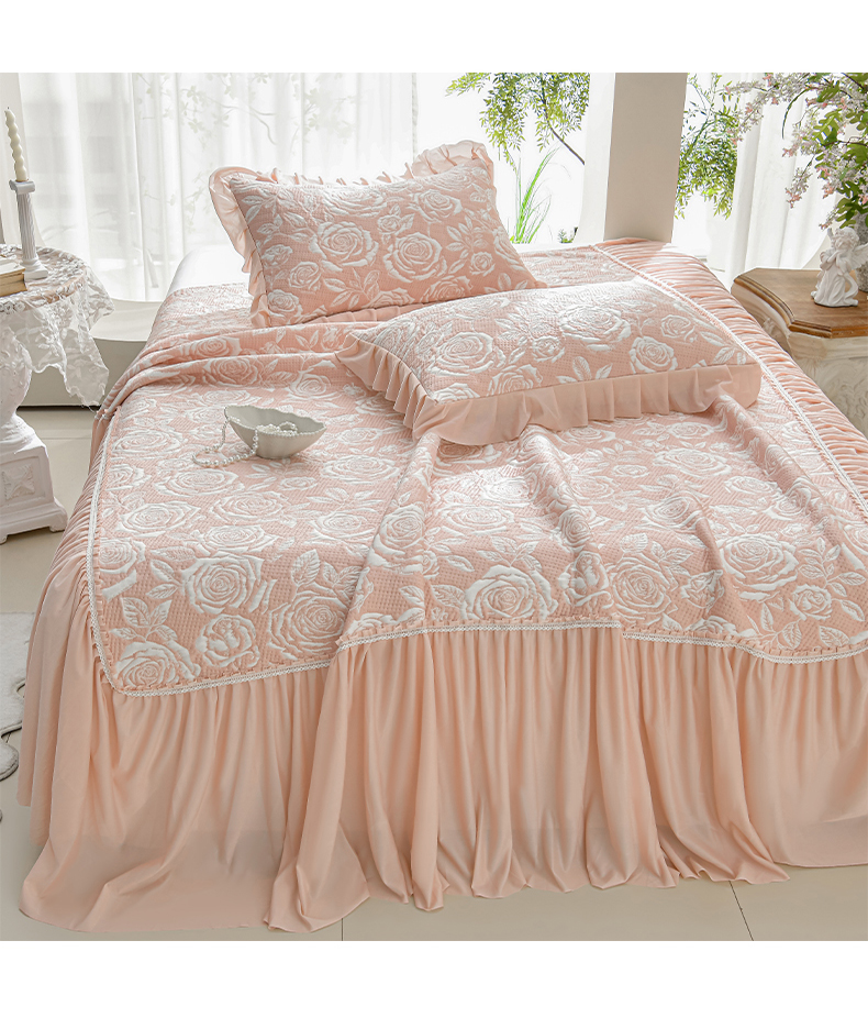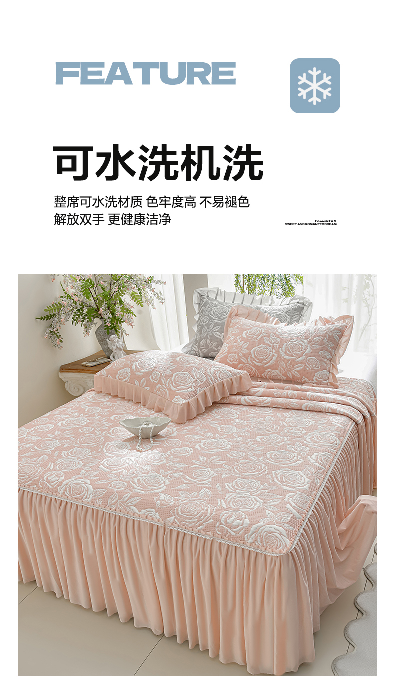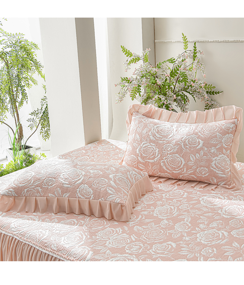 商品名称:绘萱家居 2026春夏新款530克PE100%提花冰凉豆豆床裙款凉席席子空调软席 玫瑰花香-粉
