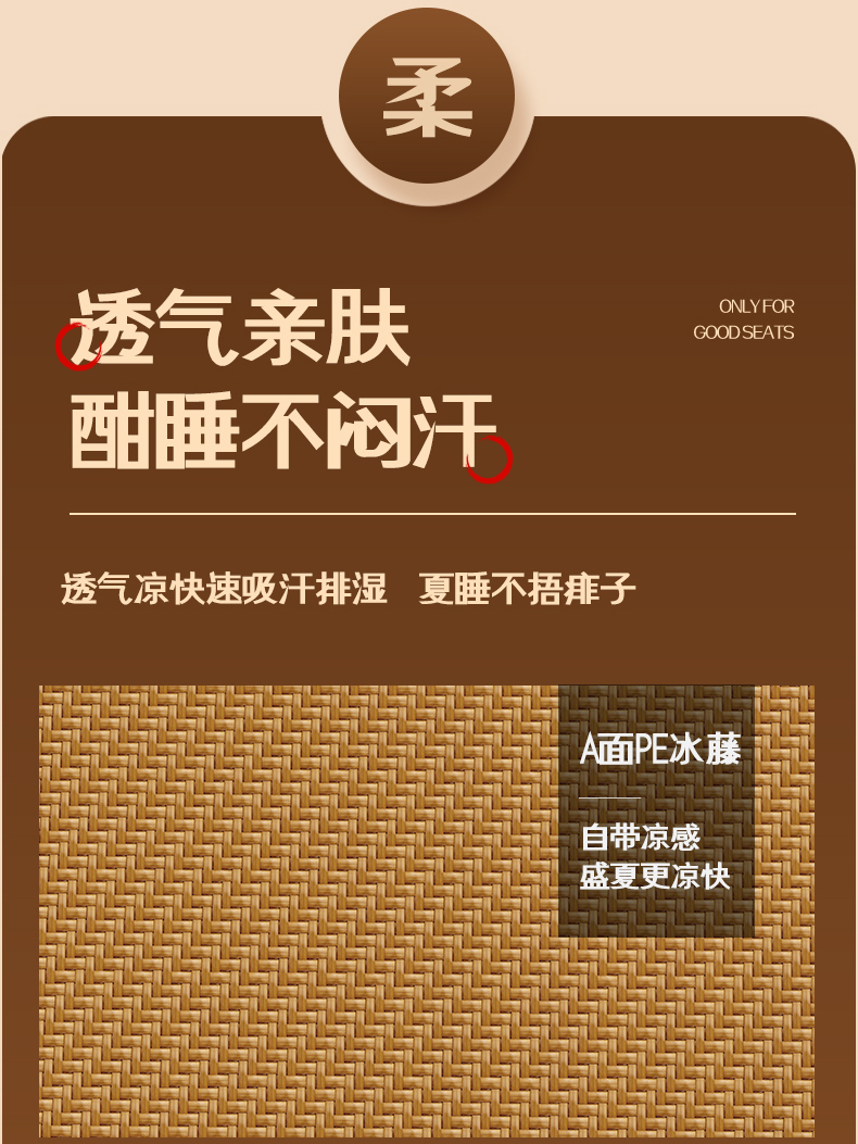 商品名称:(总)宜派家纺 2026新款凉感PE藤席雪山古藤席凉席夏季冰丝席空调席软席凉席