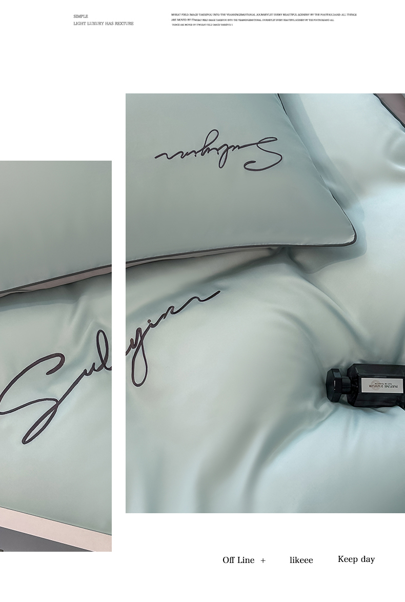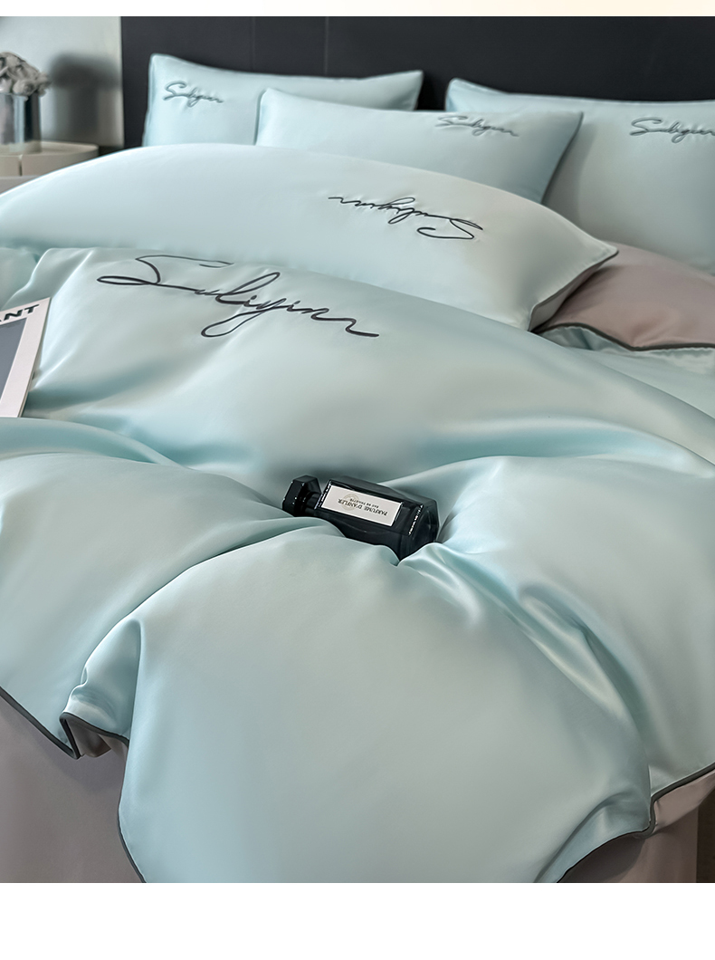 当前位置: 91家纺网 > 商品网购 > 床品套件 > 四件套 > 其它四件套 > 美澳家纺 2026新款凉感水洗冰丝真丝刺绣双拼单被套四件套 冰蓝灰