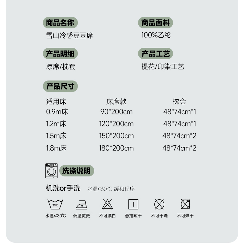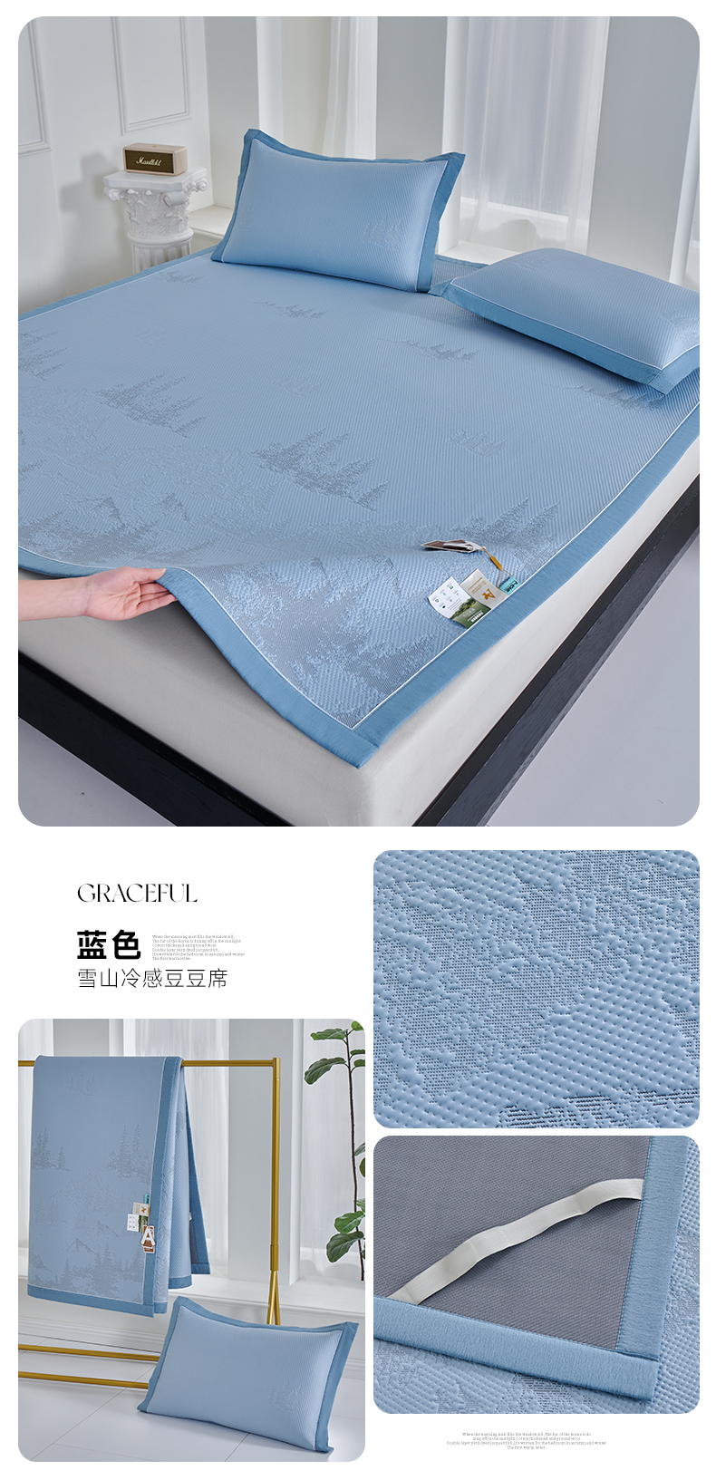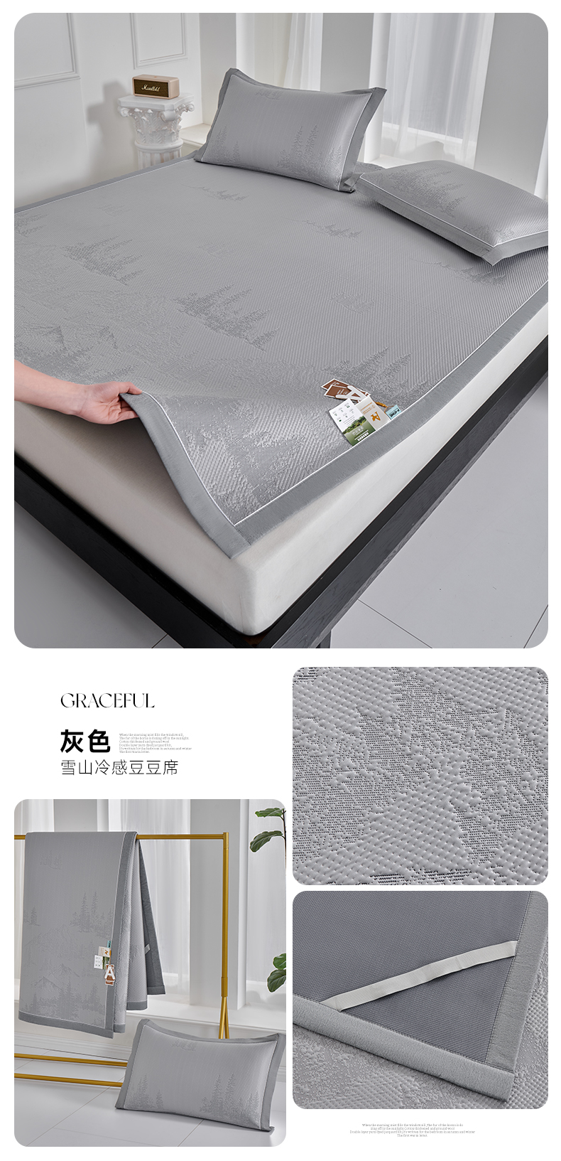 (总)小牛席业 2026新款雪山冷感豆豆席系列凉席藤席冰藤席竹席空调席草席冰丝席豆豆席乳胶席三件套,灰色,粉色,蓝色,绿色