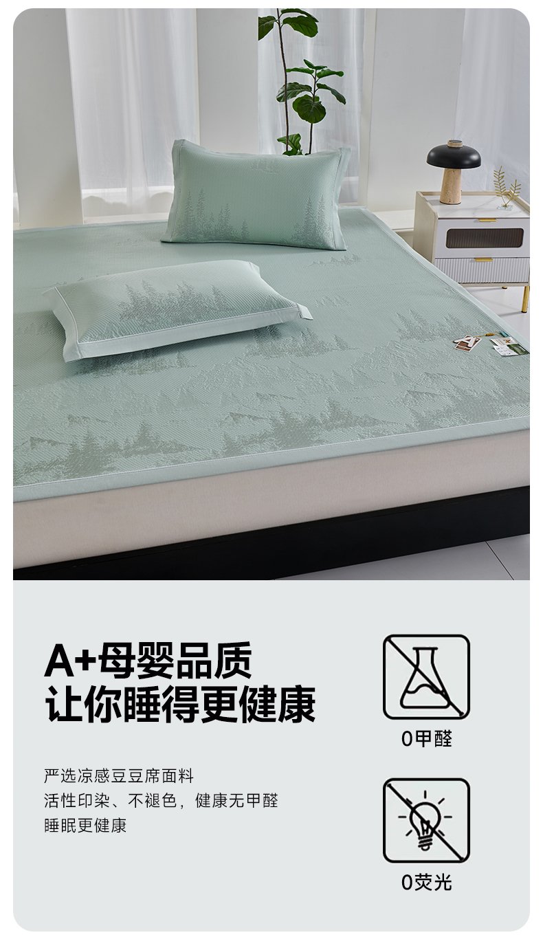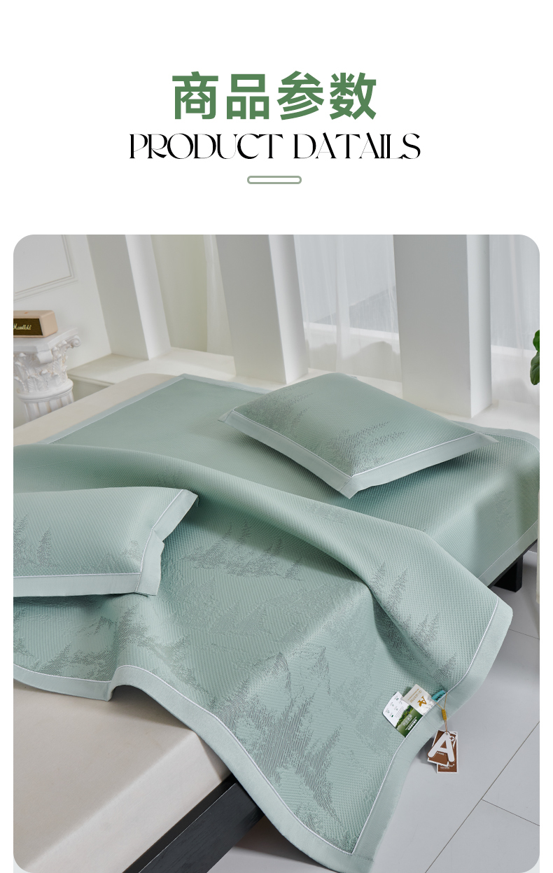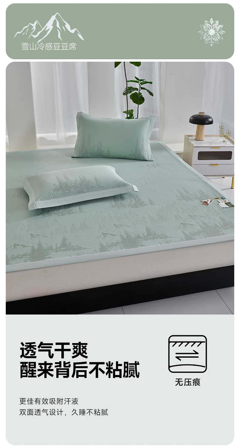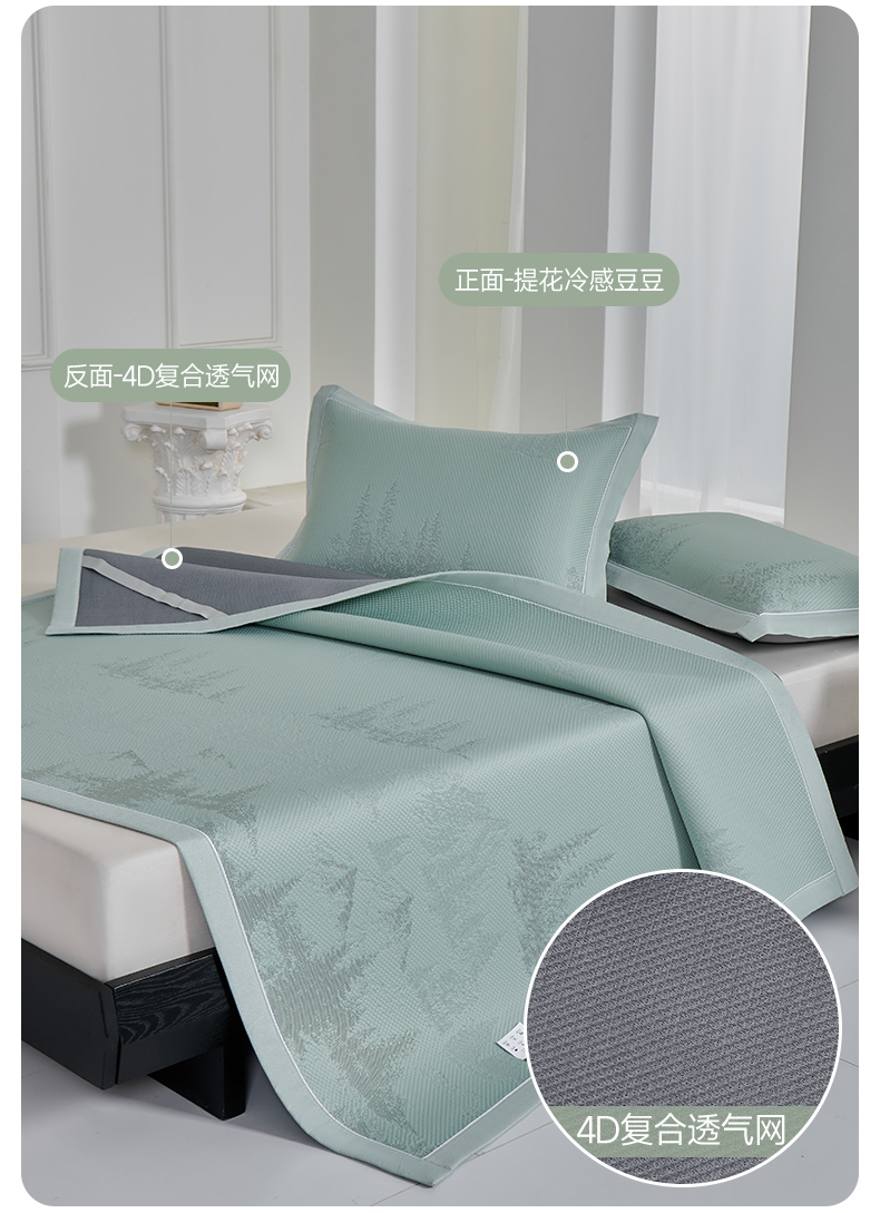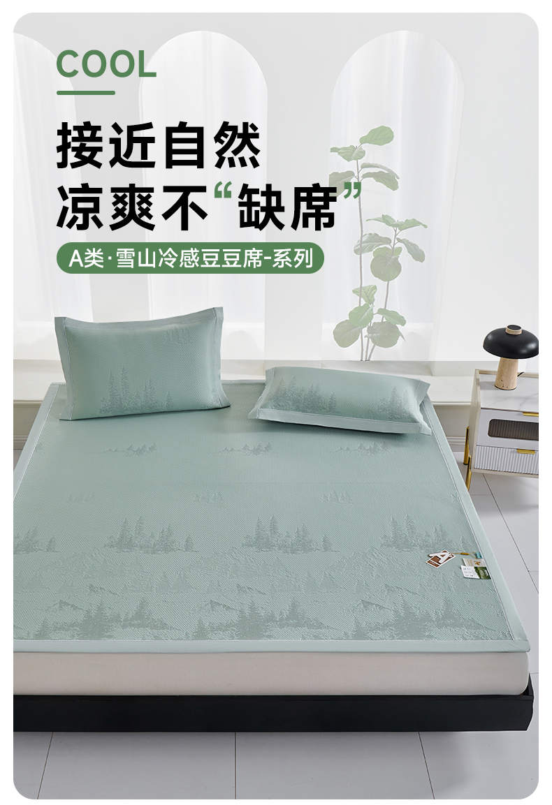 商品名称:小牛席业 2026新款雪山冷感豆豆席系列凉席藤席冰藤席竹席空调席草席冰丝席豆豆席乳胶席三件套 绿色