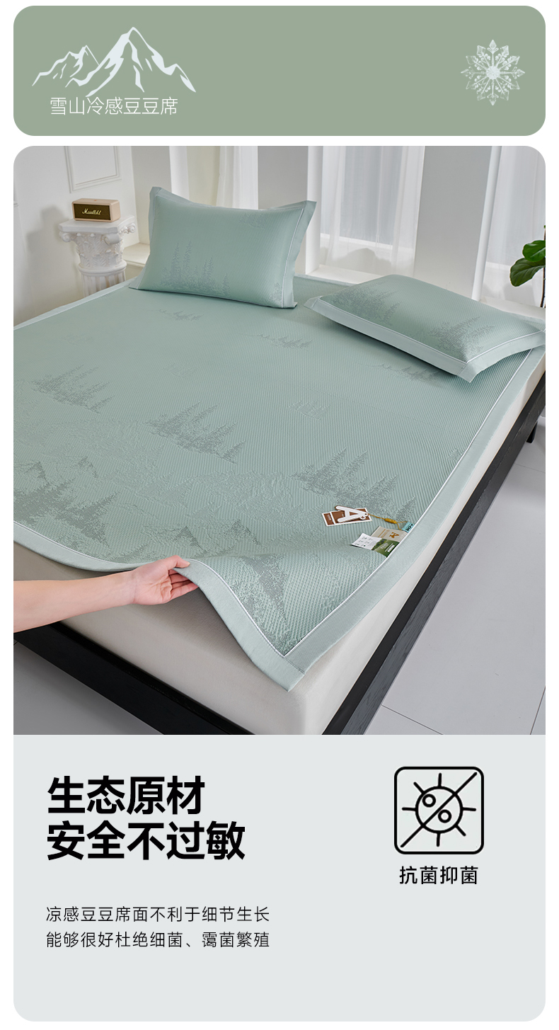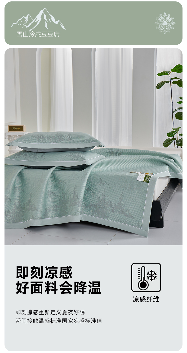小牛席业 2026新款雪山冷感豆豆席系列凉席藤席冰藤席竹席空调席草席冰丝席豆豆席乳胶席三件套 绿色