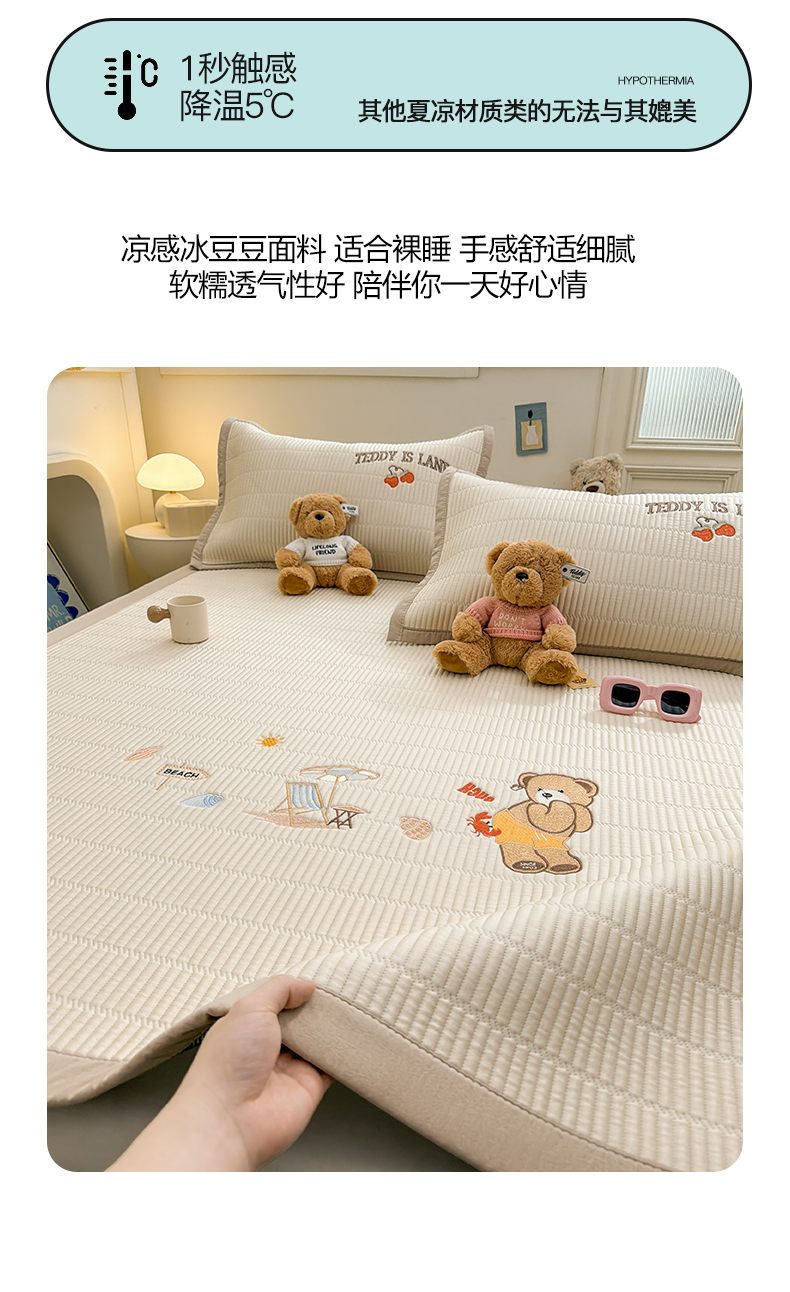 当前位置: 91家纺网 > 商品网购 > 床上用品 > 凉席 > 凉席套件 > 源舍家纺 2026新款A类高端刺绣pe乙纶冰豆豆席空调软席爱兰系列正版授权(提供买家秀) 蓝屿泰迪-蓝 床笠款