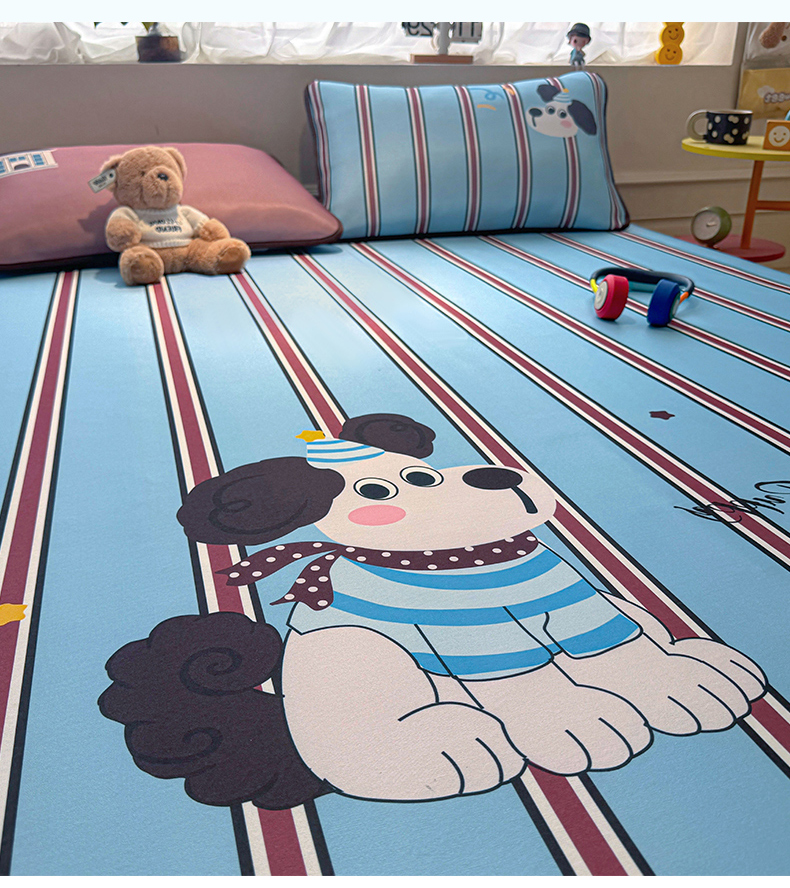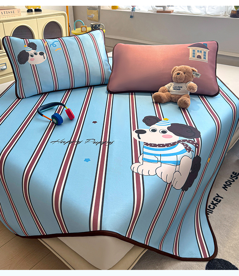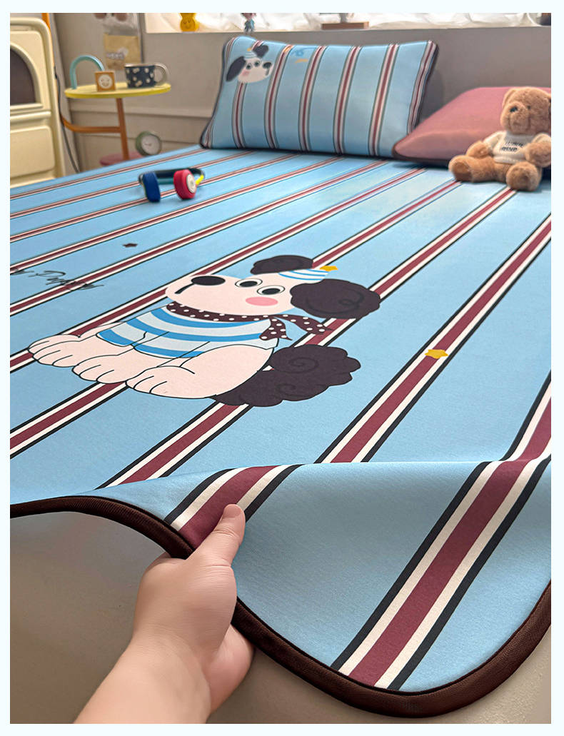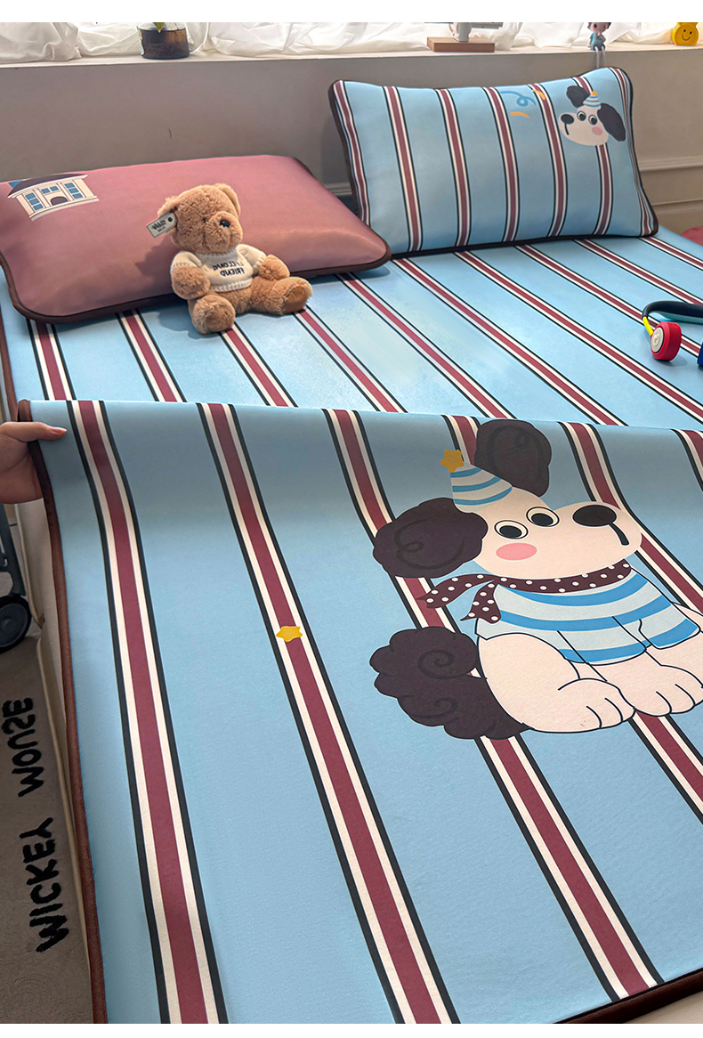 商品名称:雯豆家纺 【10A抗菌包检测】2026新款小冰皮卡通大版冰丝软席子凉席三件套凉感平铺款 小冰皮凉席-布鲁斯