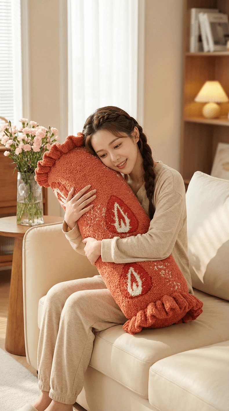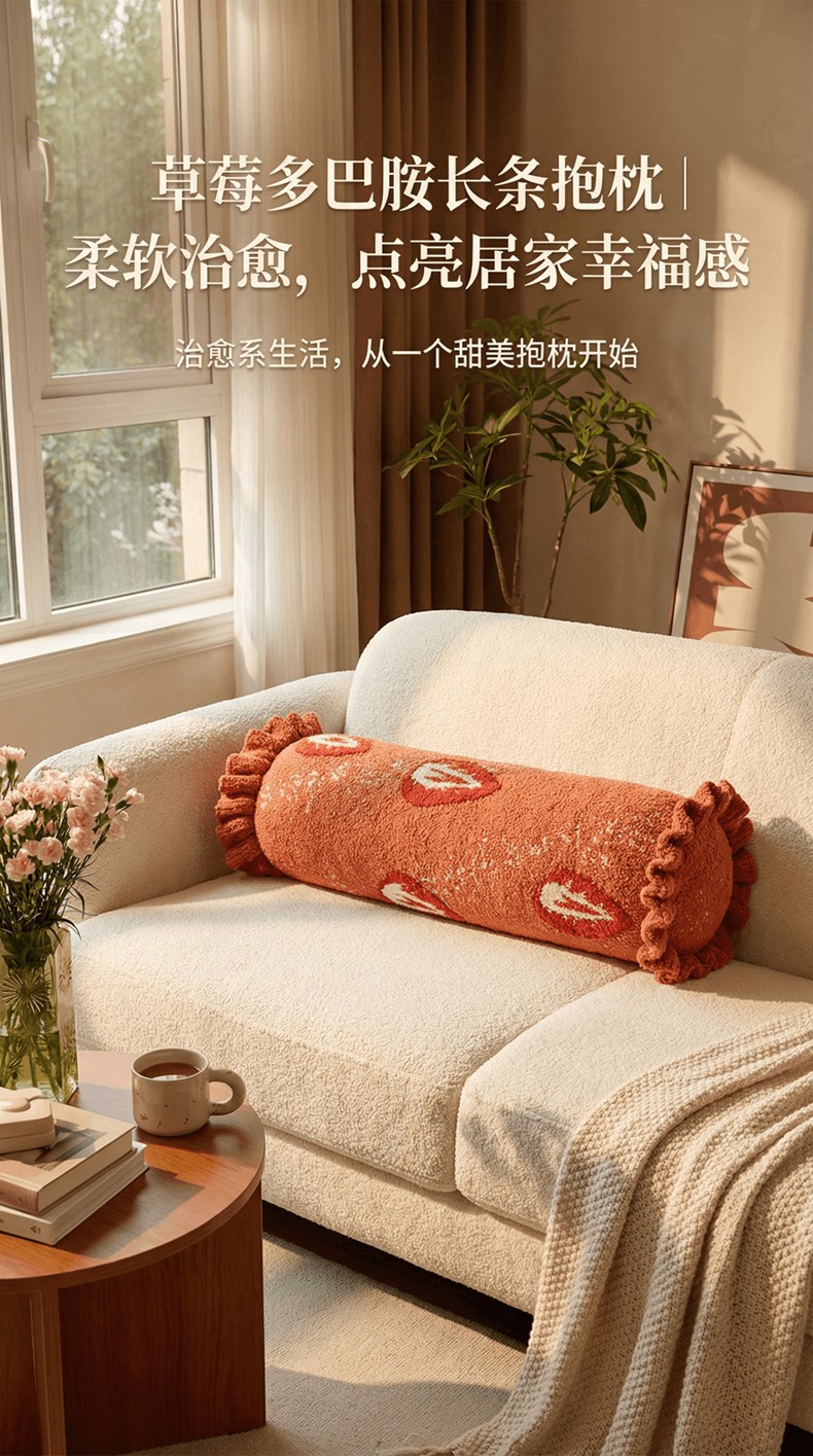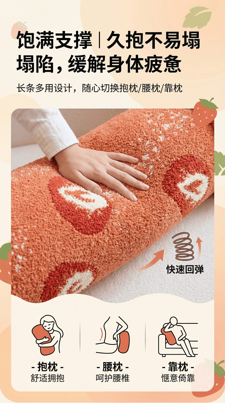 当前位置: 91家纺网 > 商品网购 > 居家日用 > 靠垫/抱枕 > (总)暖绵绵家纺 2026新款草莓多巴胺长条抱枕-草莓尖尖