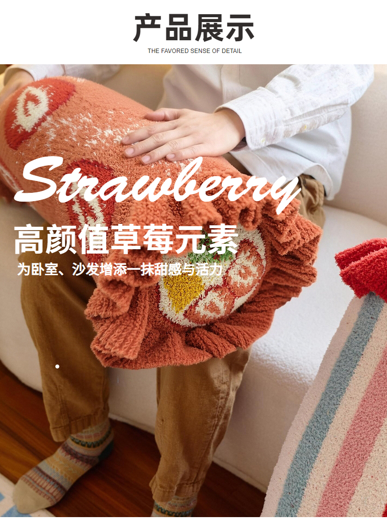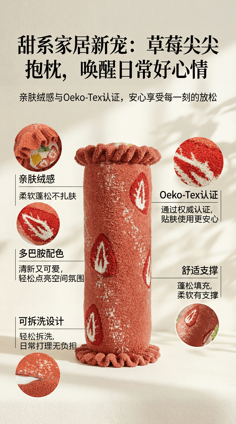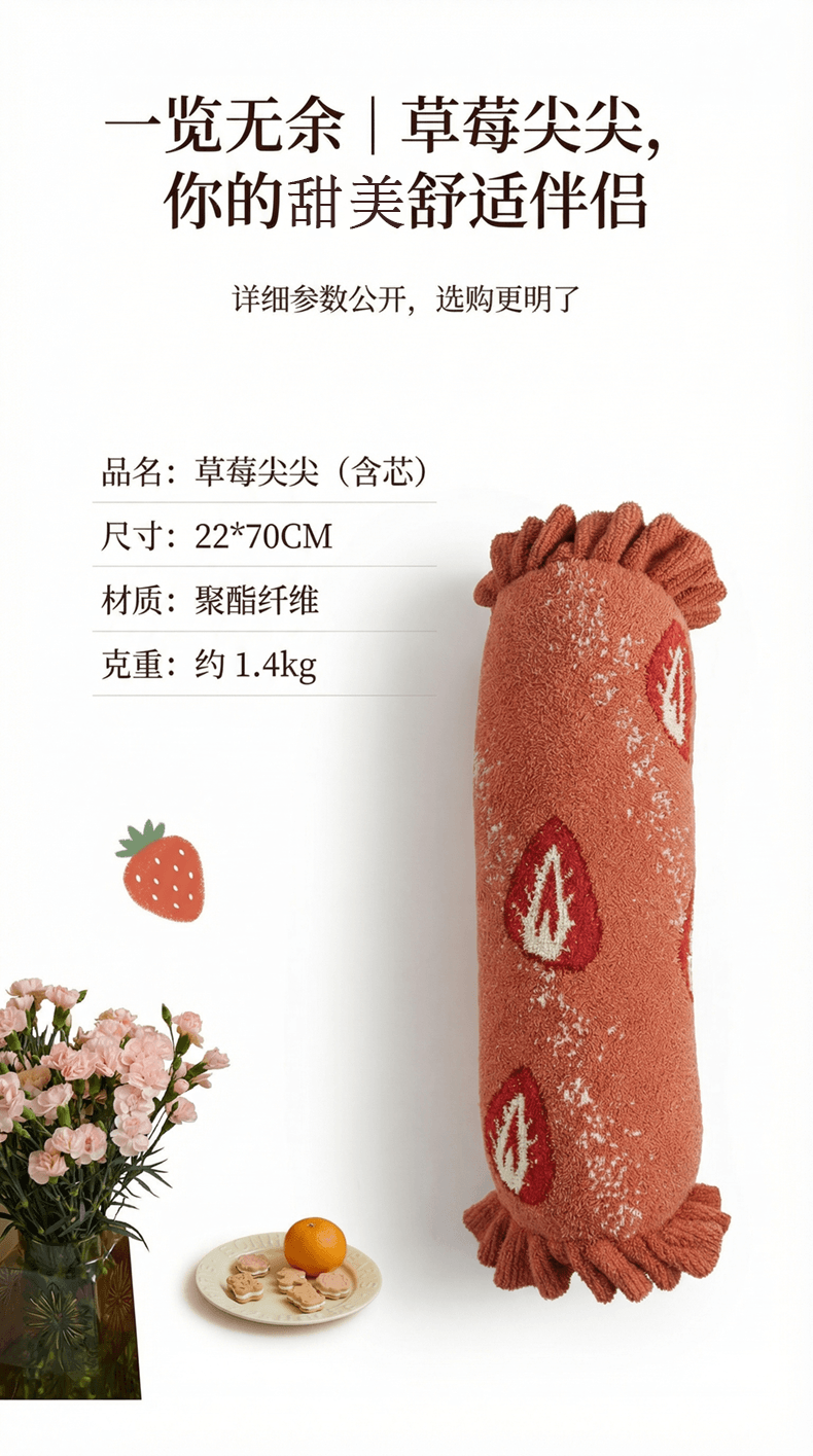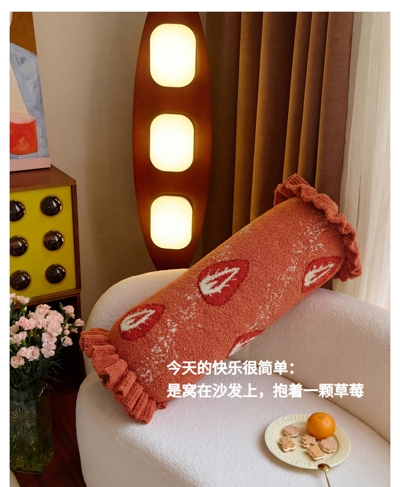 当前位置: 91家纺网 > 商品网购 > 居家日用 > 靠垫/抱枕 > (总)暖绵绵家纺 2026新款草莓多巴胺长条抱枕-草莓尖尖
