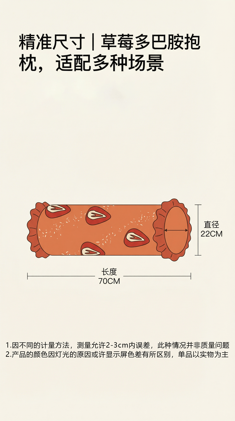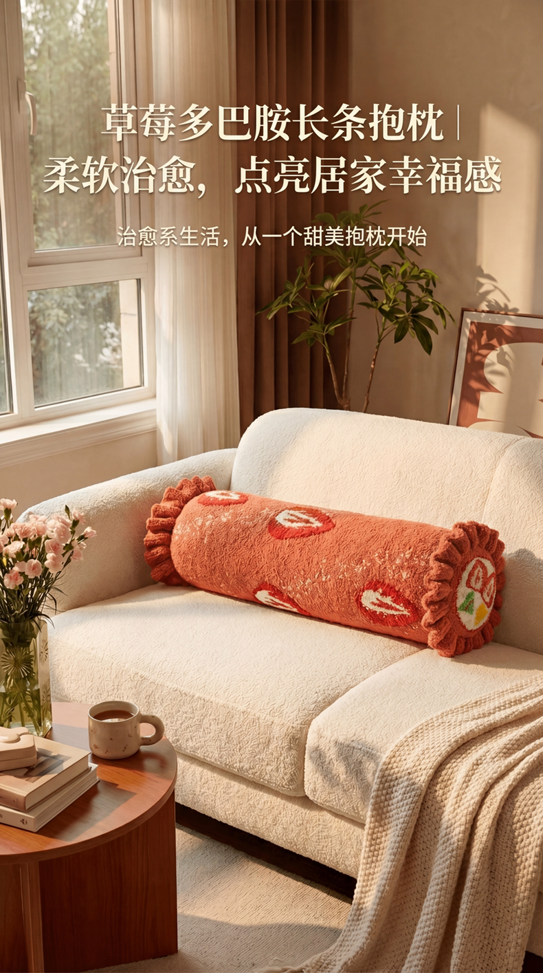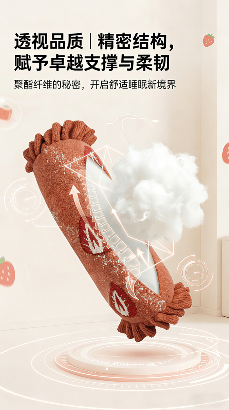 当前位置: 91家纺网 > 商品网购 > 居家日用 > 靠垫/抱枕 > (总)暖绵绵家纺 2026新款草莓多巴胺长条抱枕-草莓尖尖