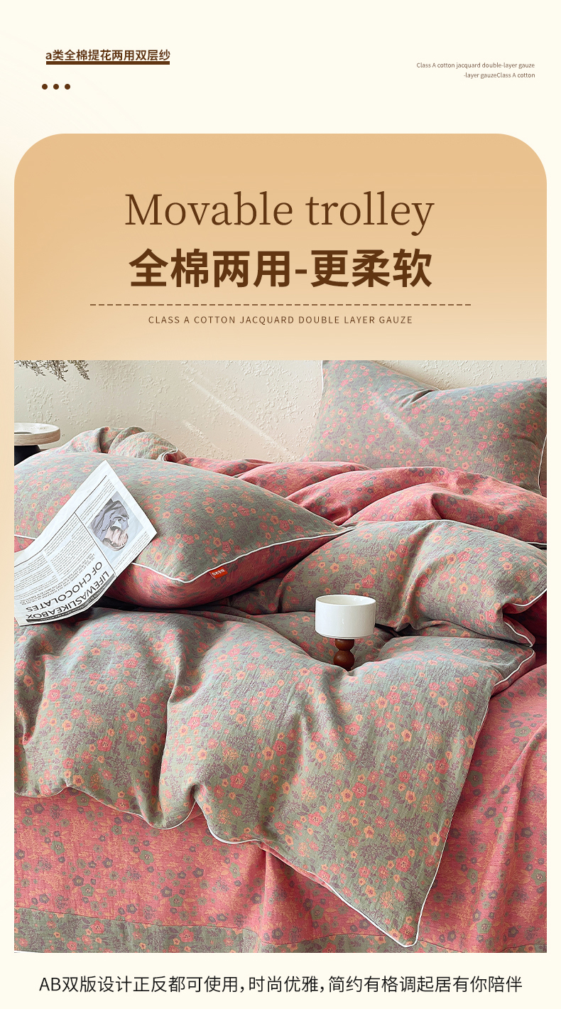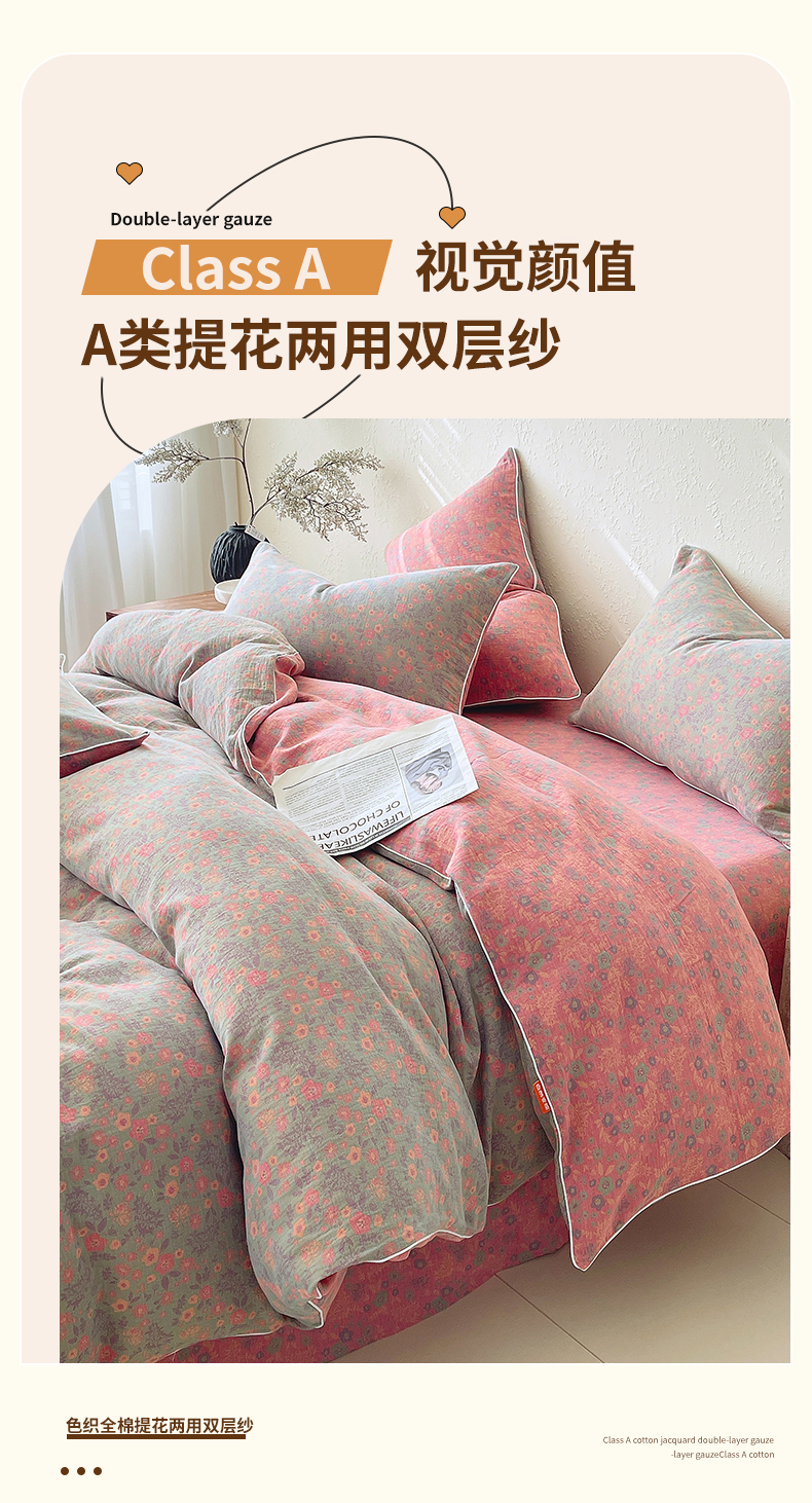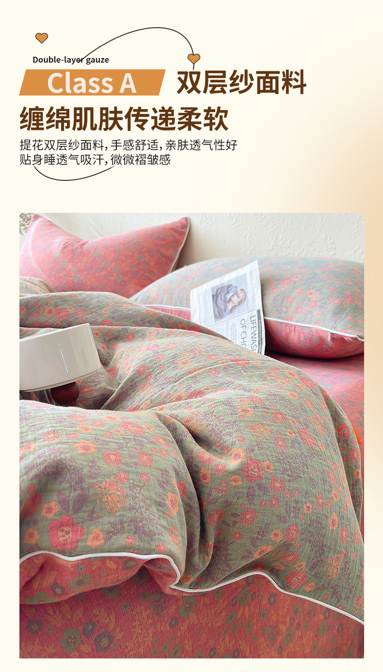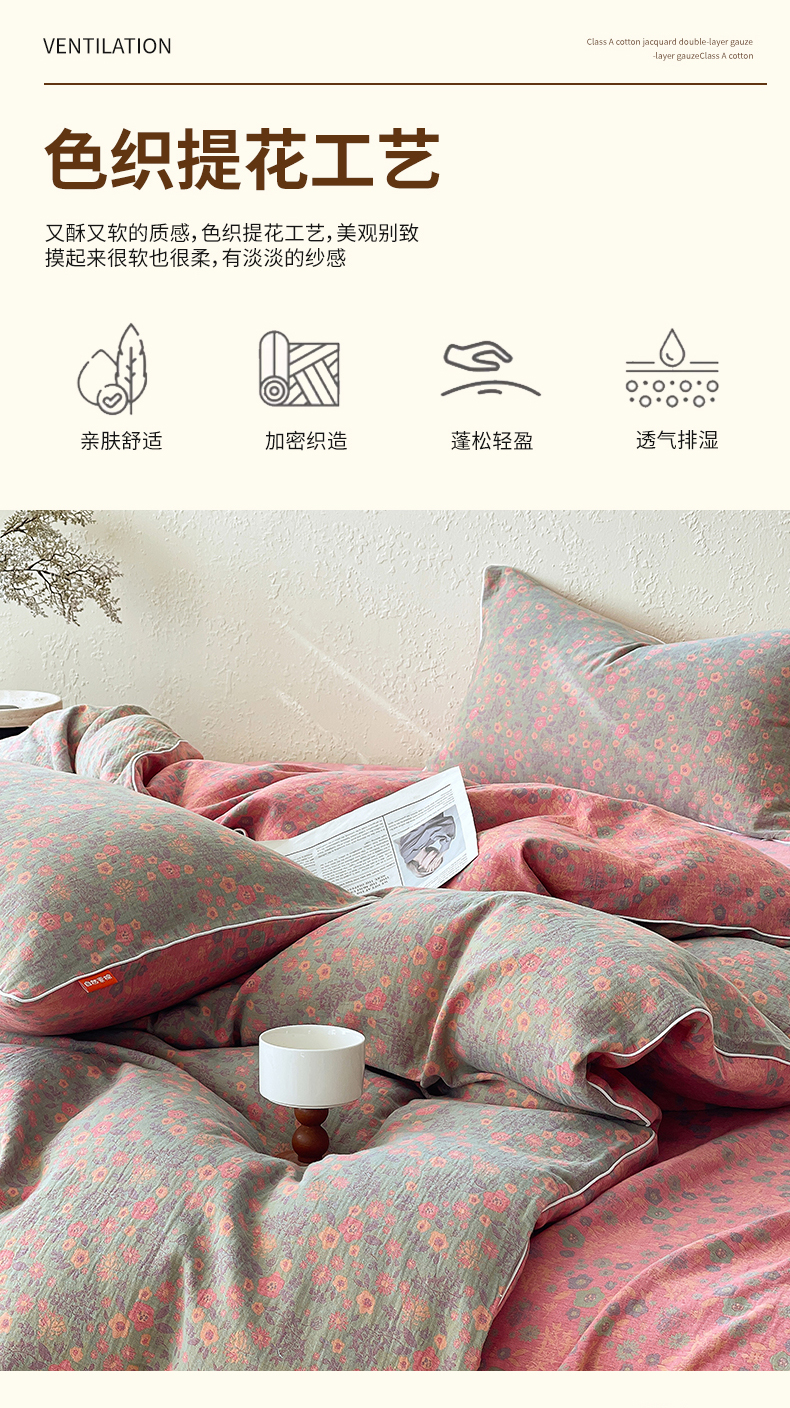 当前位置: 91家纺网 > 商品网购 > 床品套件 > 四件套 > 全棉普通四件套 > 春皖家纺 2026新款提花双层纱纯棉全棉四件套 惜梦-绿粉