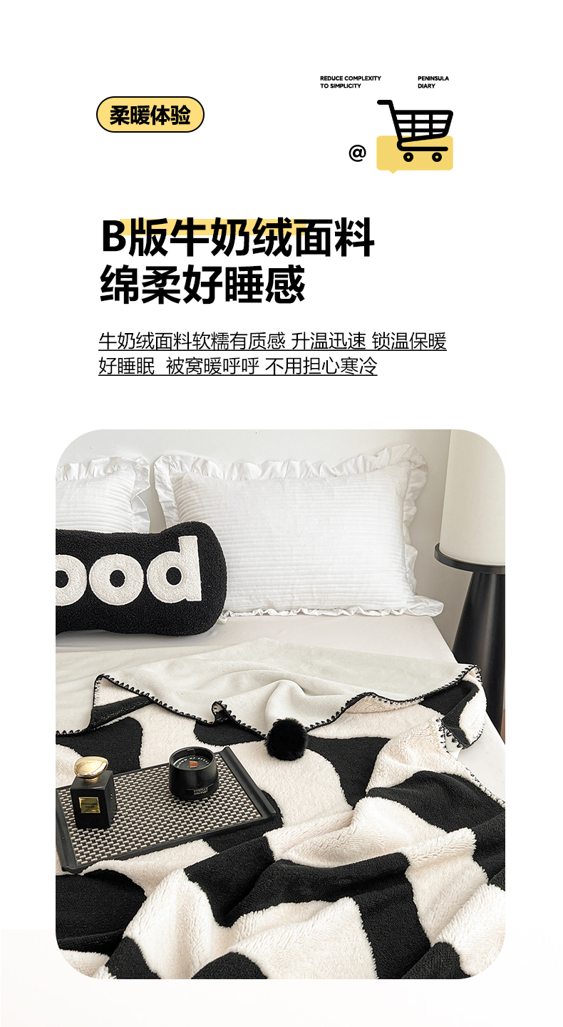 商品名称:娜朵家纺 2026新款阳离子牛奶绒双层毛球复合毯 黑白森林
