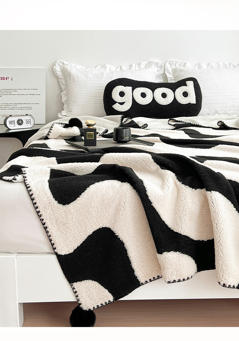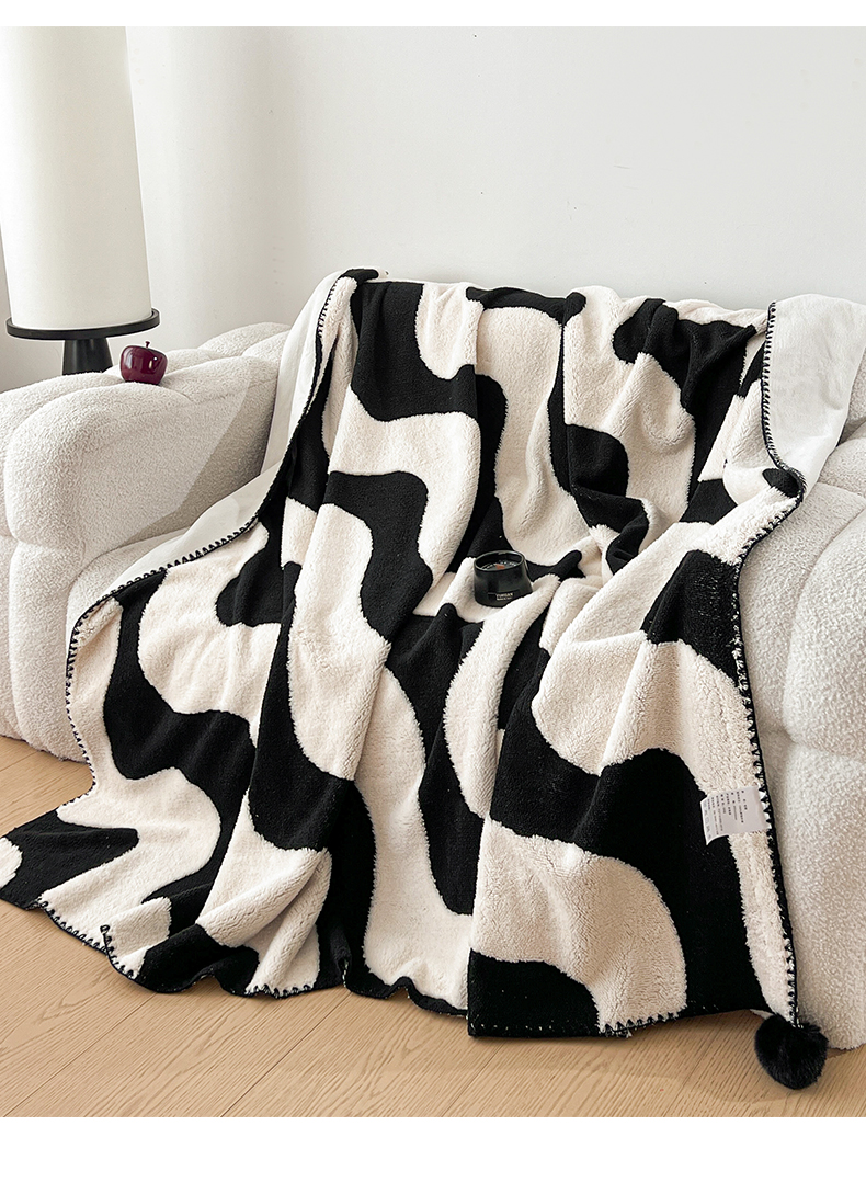 娜朵家纺 2026新款阳离子牛奶绒双层毛球复合毯 黑白森林