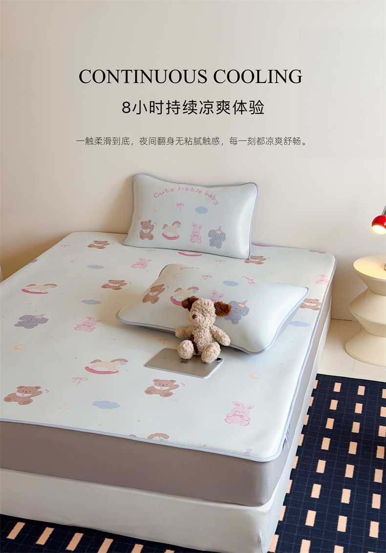 (总)橘滋 2025夏日新款高端A类原创设计婴儿童趣卡通数码印花冰丝席凉席-床席床笠,大眼熊仔,叠叠乐园,蝴蝶结兔兔,欢乐曲奇,木马小熊,太空冒险,熊猫胖达