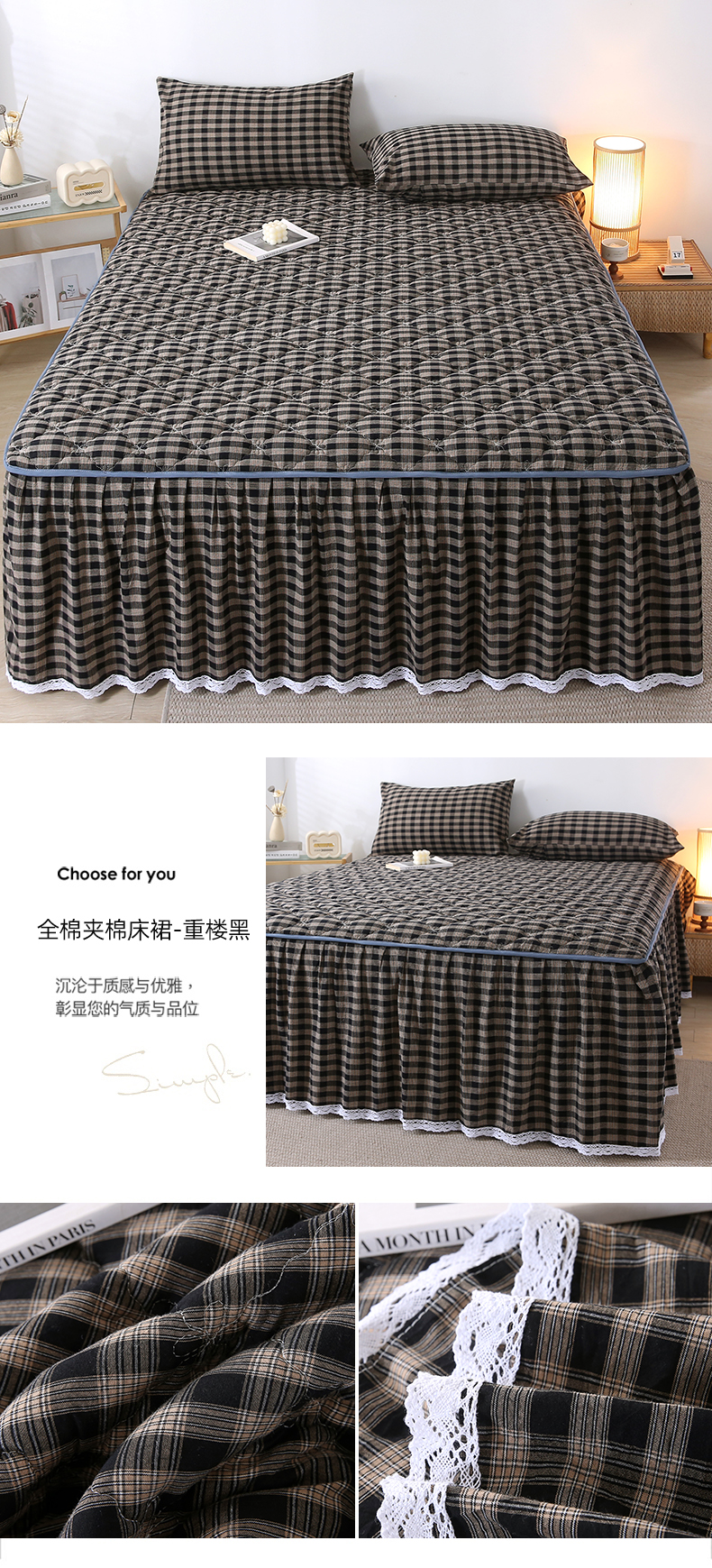 (总)欧妮家纺 2026新款日式全棉水洗棉色织夹棉床笠-席梦思保护套,日式全棉床笠-焦糖咖,日式全棉床笠-草绿,日式全棉床笠-灰格,日式全棉床笠-重楼黑,日式全棉床笠-重楼蓝,日式全棉床笠-重楼绿