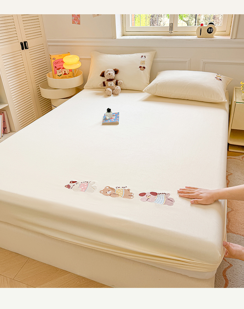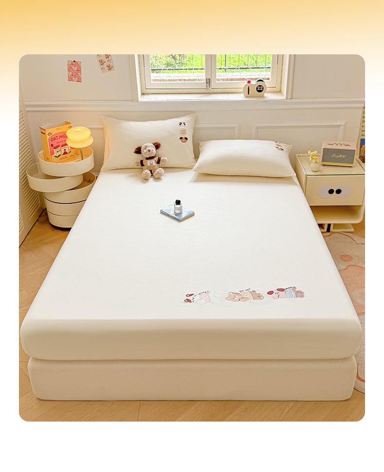 (总)居眠 2025新款A类母婴级卡通毛巾绣天丝床笠,假期小狗-天蓝,卡皮巴拉-水果绿,噗噗猫-肉粉,小树苗-奶昔白,小熊-姜黄