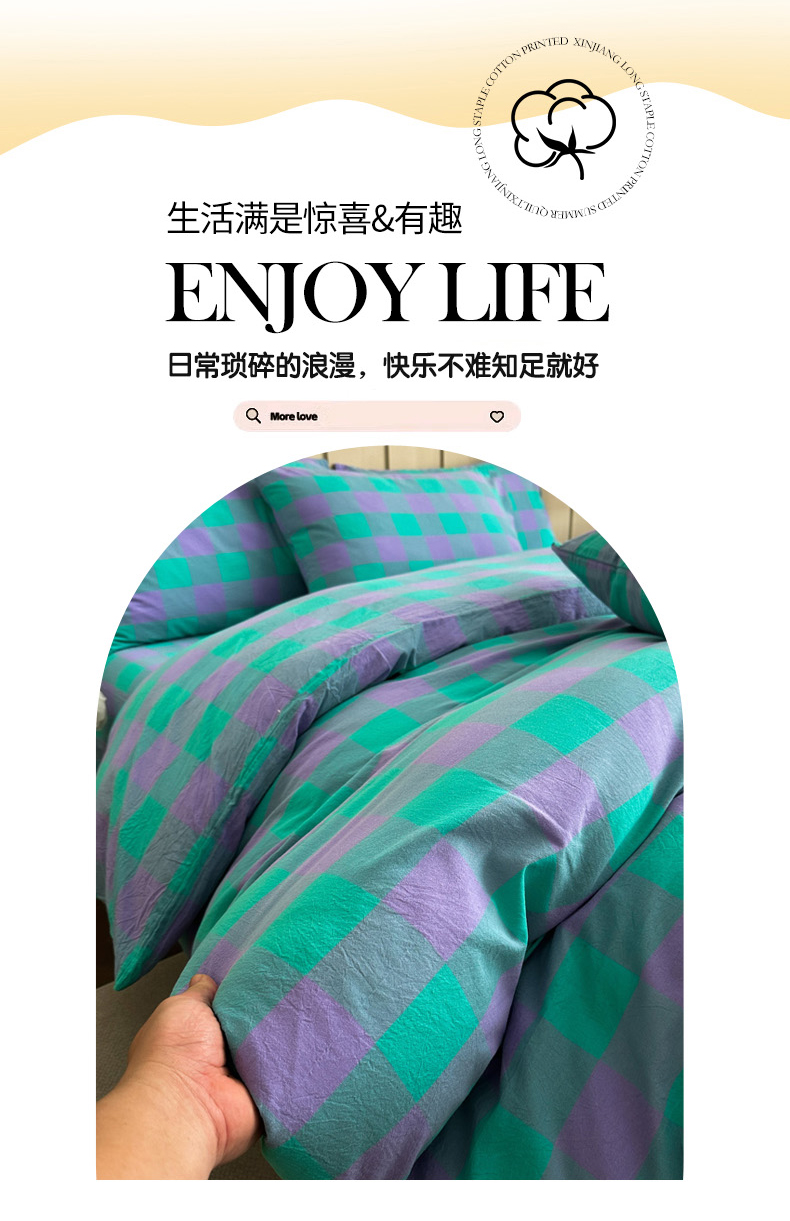 • 91家纺网 家纺一手货源 找家纺 (总)蓝梦 2026新款全棉纯棉色织水洗棉简约四件套-大格,艾格绿,鹅黄,可可灰,蓝粉格,桃粉,优雅兰,宝利格