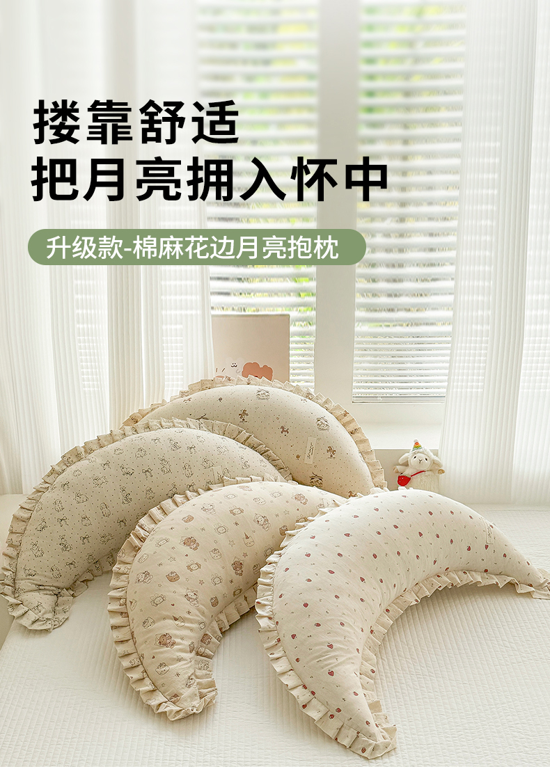 蔻眠 升级款棉麻花边月亮长抱枕夹腿抱枕芯多功能月亮枕头 主图