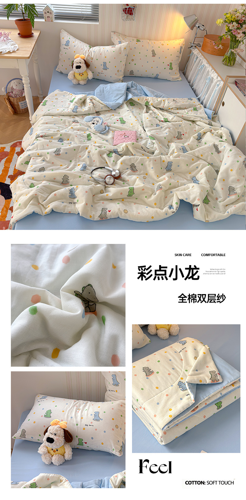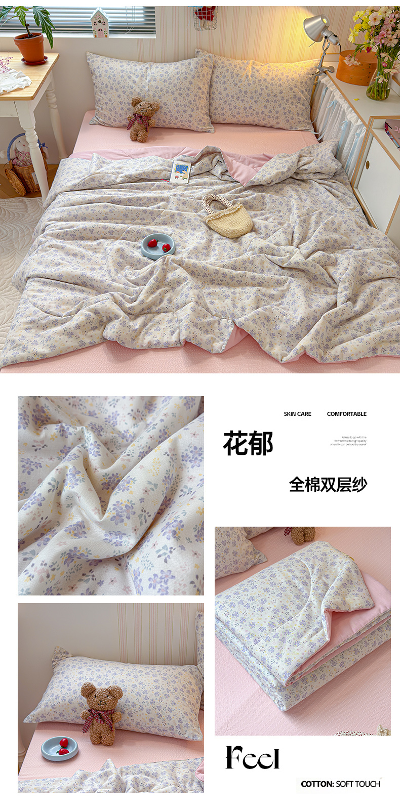 (总)老帅的工厂店 2026新款A类云感双层纱7A抗菌单品床盖系列,芋泥小兔,草莓格,春野粉调,点点碟序,碟织,粉波Kitty梦,海盐波波,海盐花田,花开漫漫,花蔓,花漾,蓝格萌狗,暖花,浅野小猫,倾结,甜心兔,兔眠,兔兔密语,雾棕花影,小狗笔记,织梦