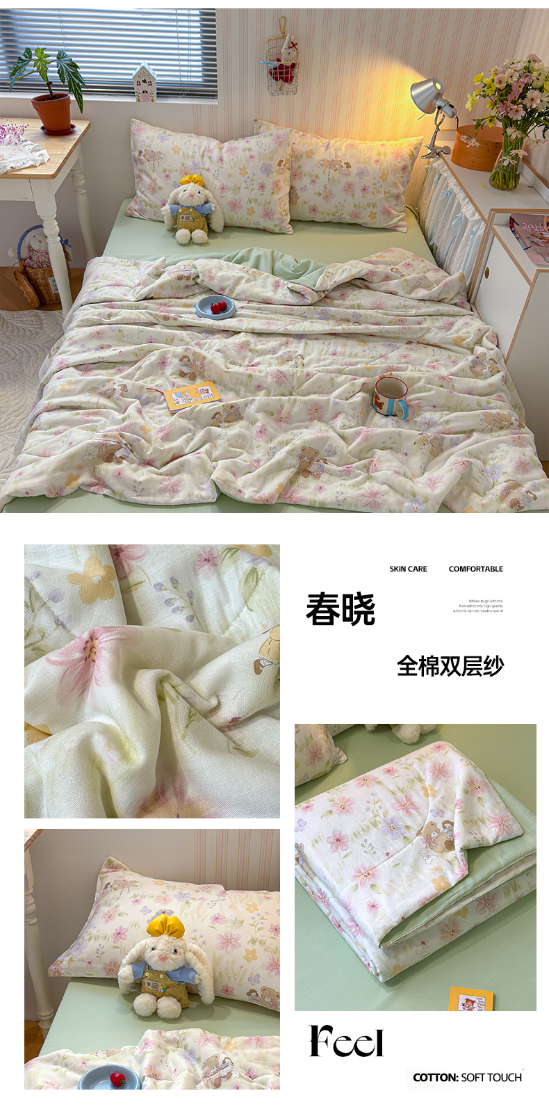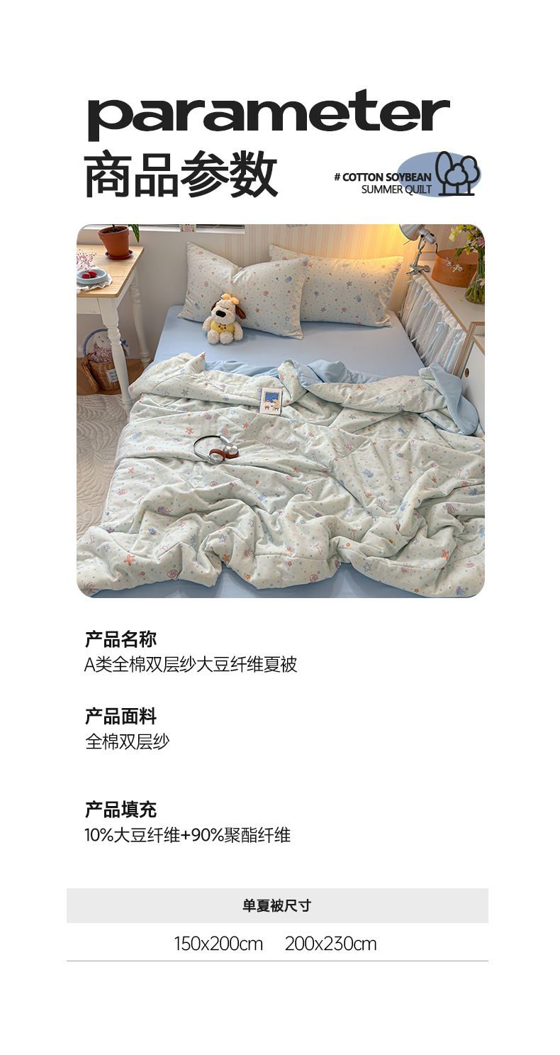 商品名称:老帅的工厂店 2026新款A类全棉双层纱大豆纤维夏被 组合图