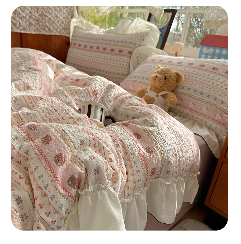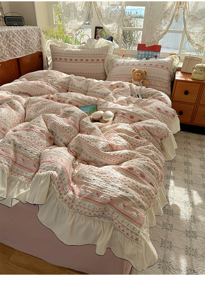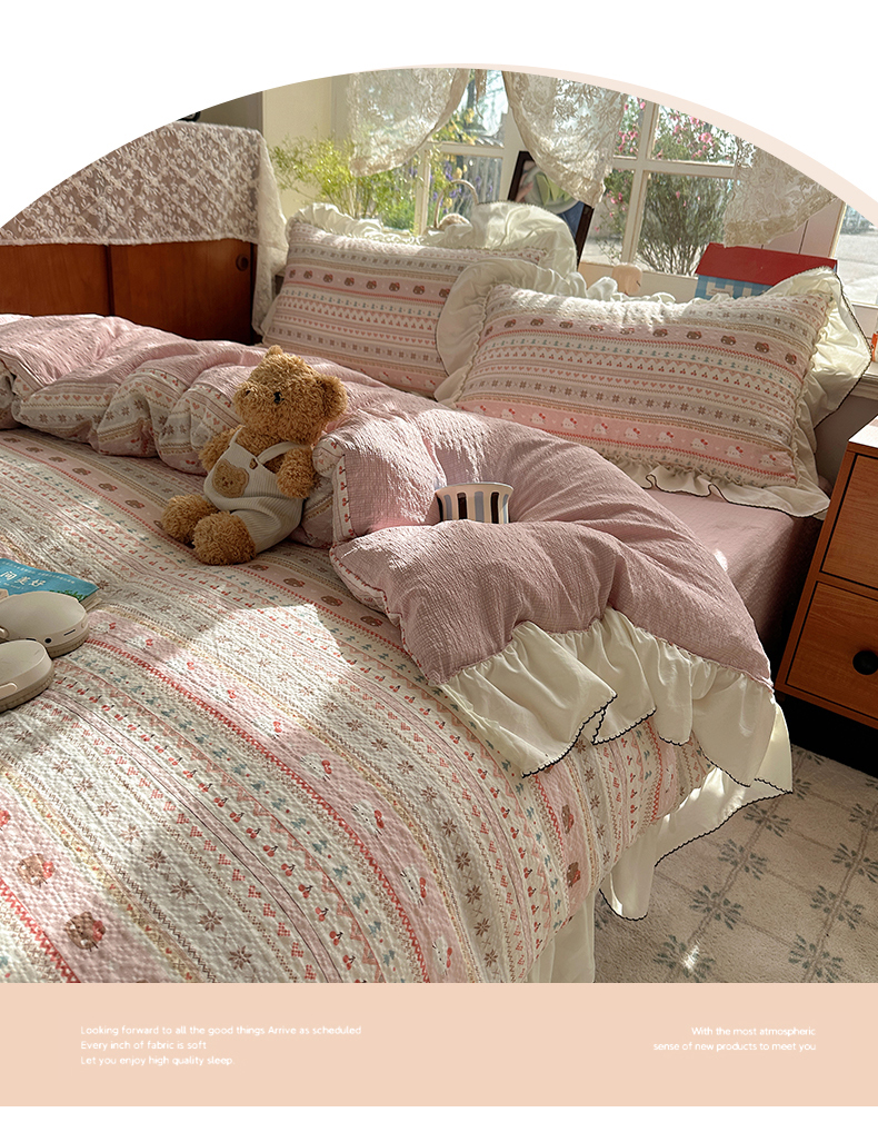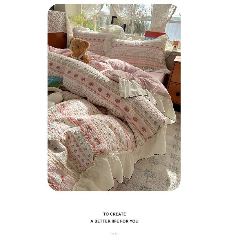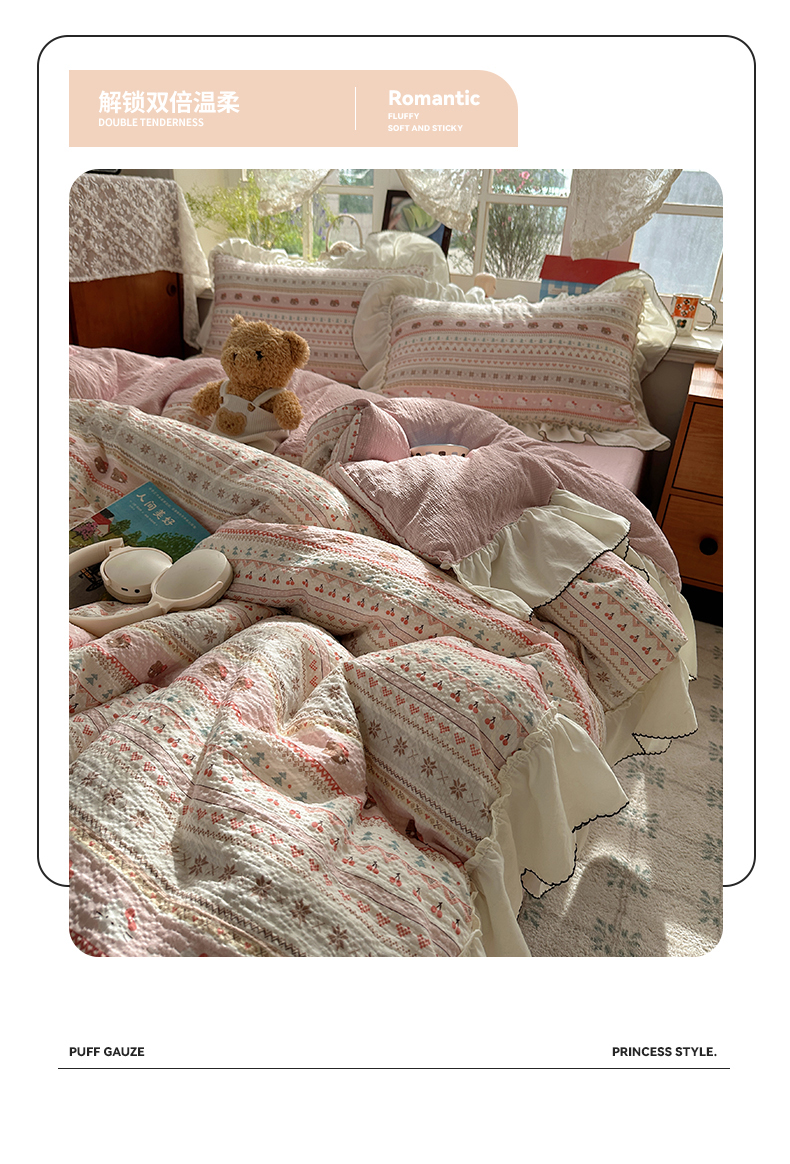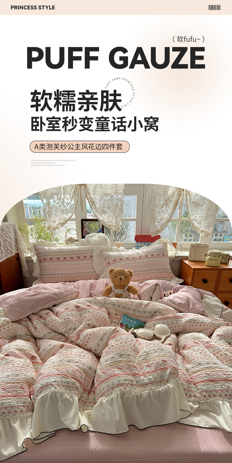 当前位置: 91家纺网 > 商品网购 > 床品套件 > 四件套 > 化纤普通四件套 > 凯洛奇 2026新款公主风云感泡芙纱花边款四件套 甜粉猫