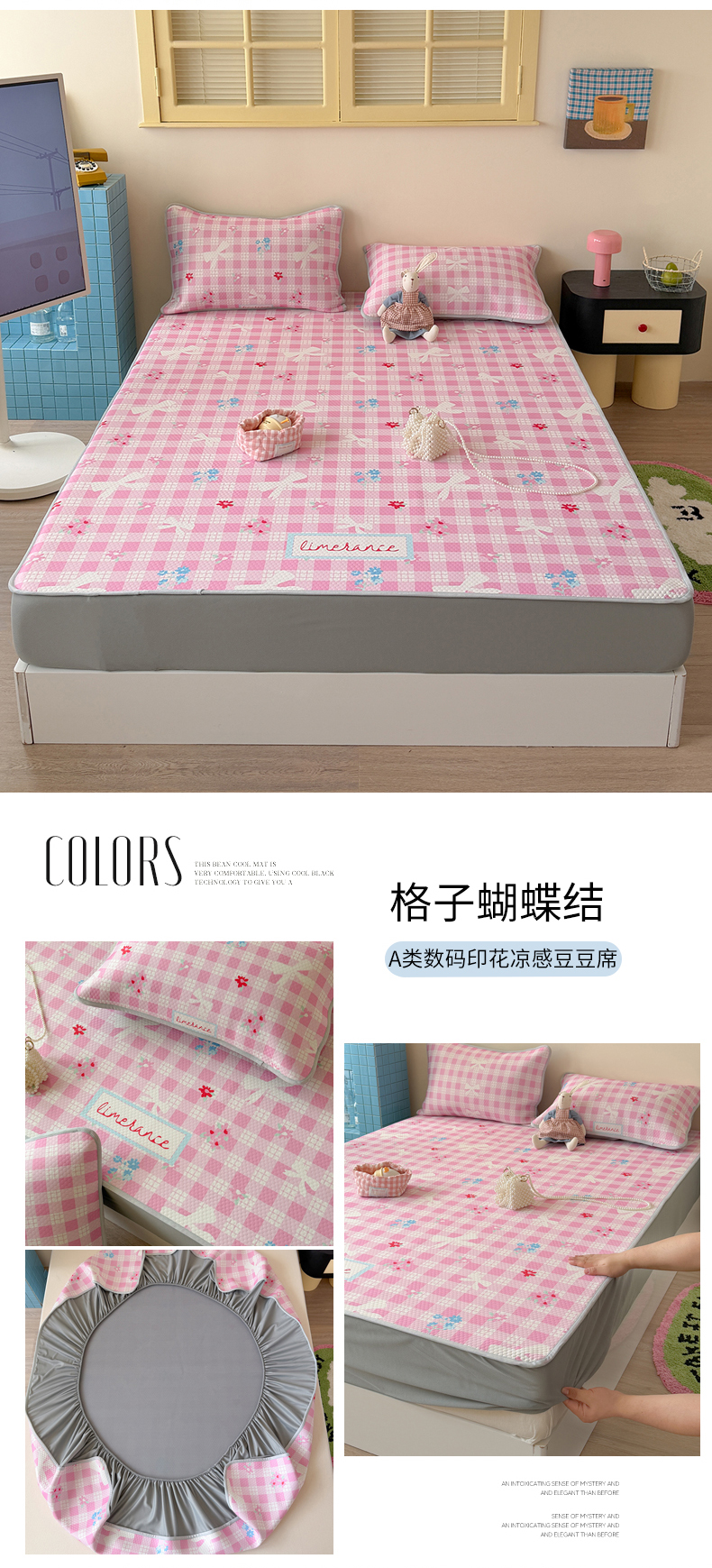 (总)Sweet dreams甜梦 2026新款夏款A类提花乙纶PE豆豆凉席,简斑香槟,绿意叶绿,罗意威灰,小福马粉,星月蓝