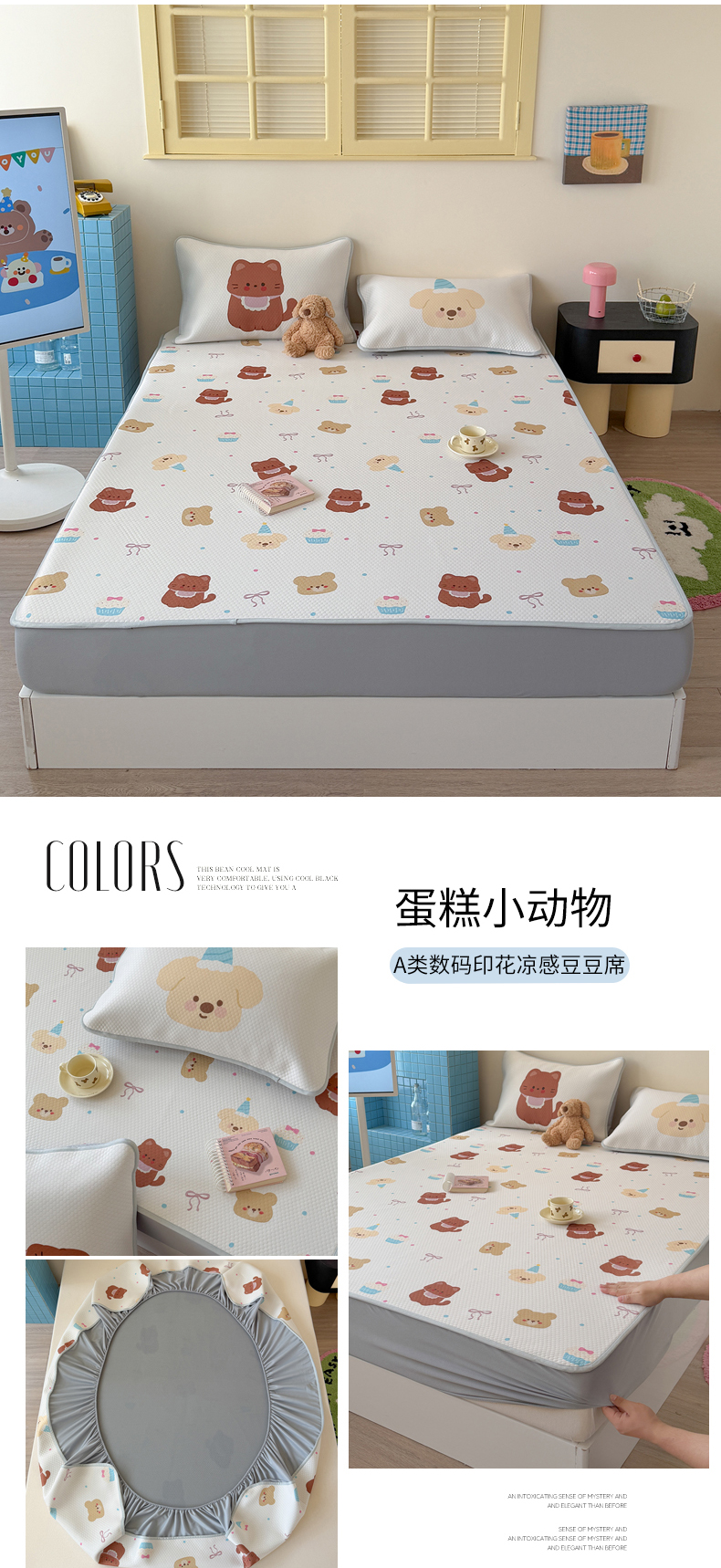 • 91家纺网 家纺一手货源 找家纺 (总)Sweet dreams甜梦 2026新款A类数码印花凉感豆豆床笠款凉席--小版,猫猫蝴蝶结,蛋糕小动物,格子蝴蝶结,格子小熊,狗狗的游乐园,蝴蝶结狗狗,花花小兔,花纹兔,黄底粉花,黄花小狗,美好一天,甜梦时光,小森林,樱桃小熊
