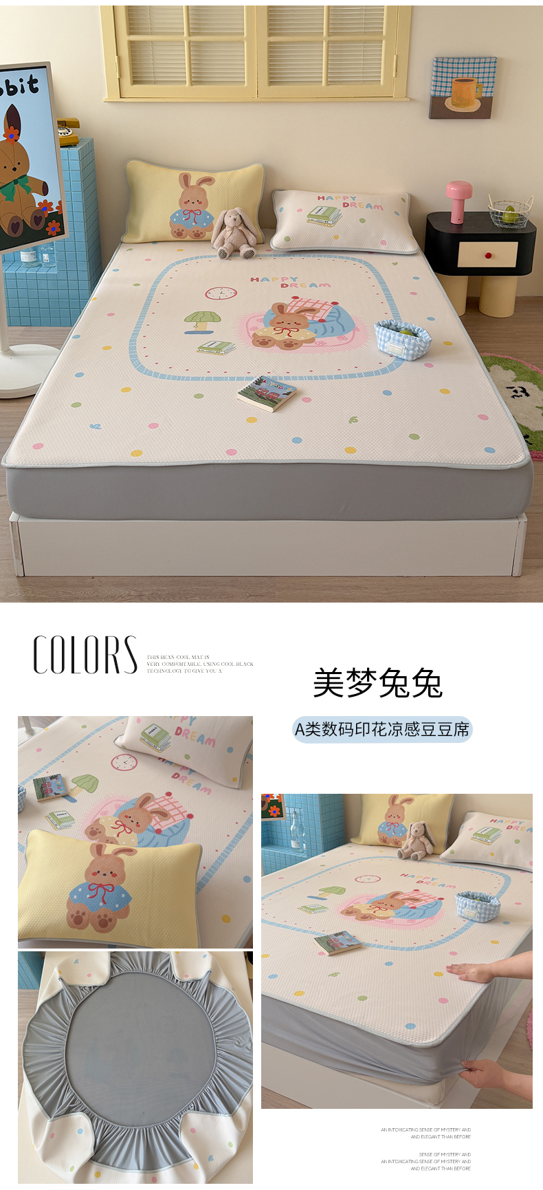 • 91家纺网 家纺一手货源 找家纺 (总)Sweet dreams甜梦 2026新款夏款A类锦氨卡通刺绣立体床笠款凉感席,安睡小熊,布噜海马,春日小兔,乐萌小象,组合