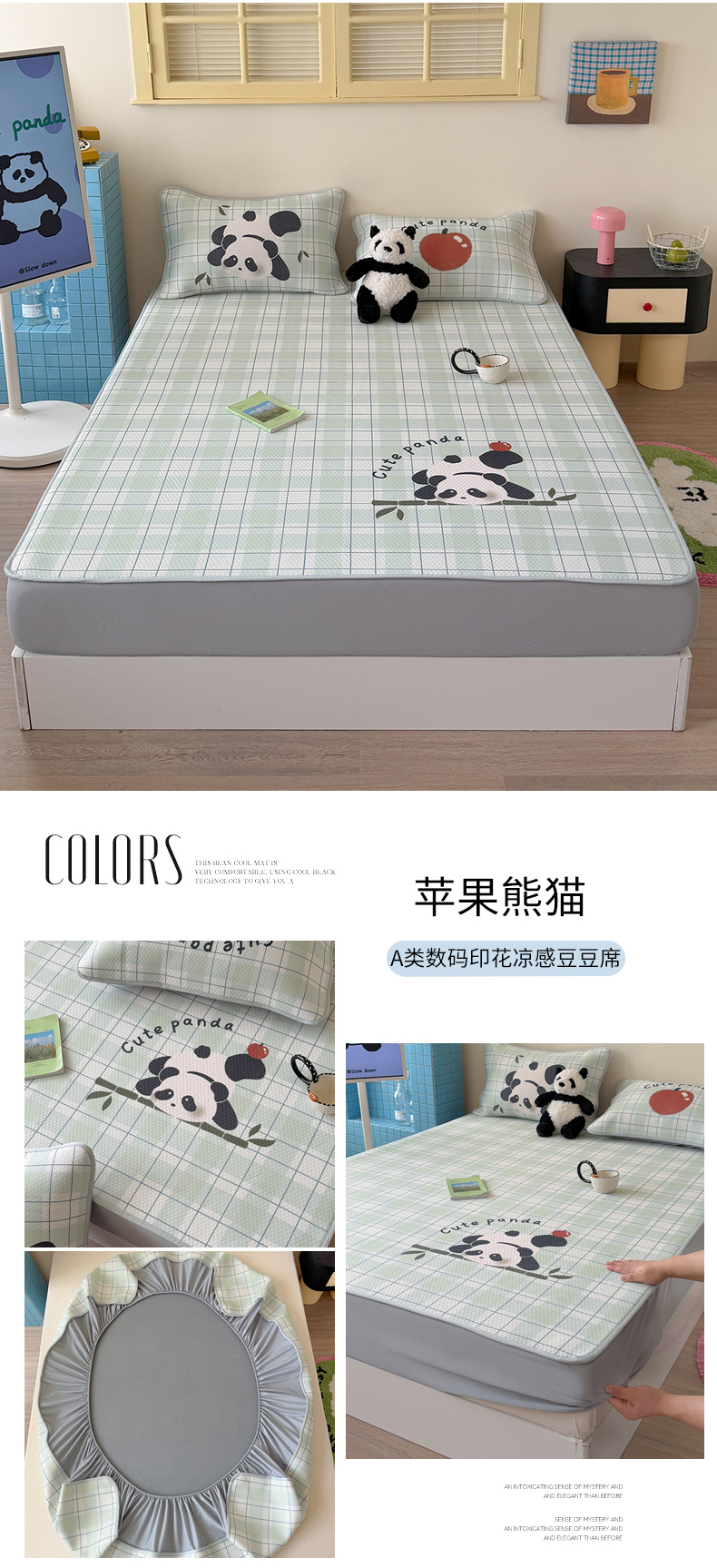 • 91家纺网 家纺一手货源 找家纺 Sweet dreams甜梦 2026新款A类数码印花凉感豆豆床笠款凉席--小版 樱桃小熊