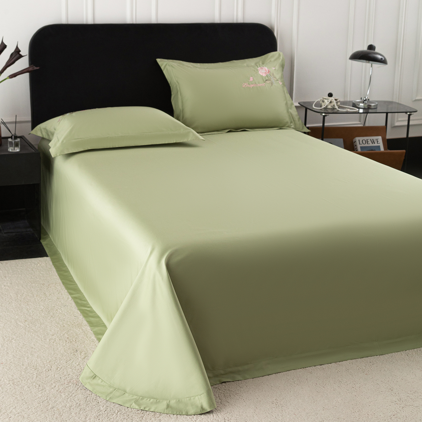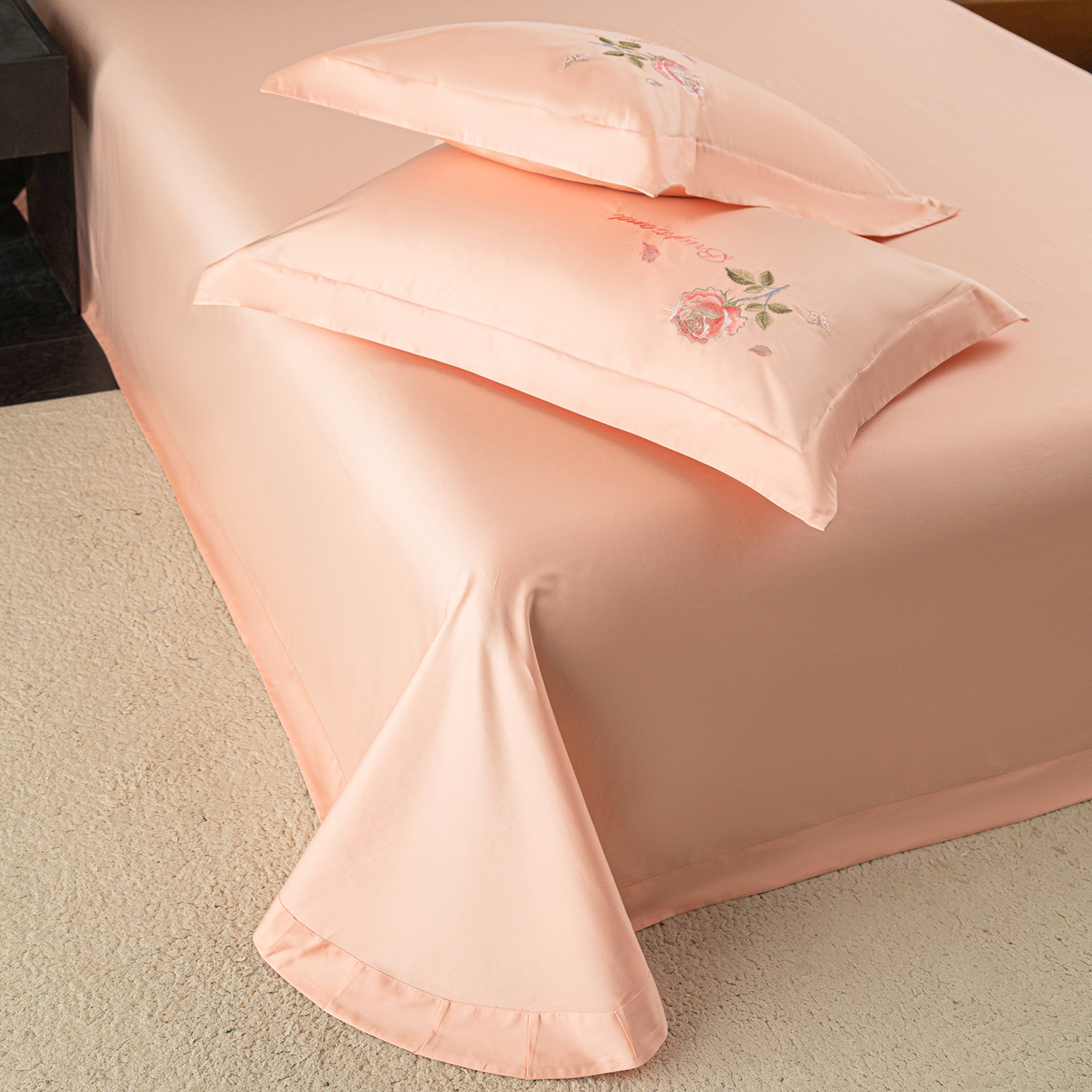 • 91家纺网 家纺一手货源 找家纺 莉迪娅 2026新款50s双股长绒棉纯色简约绣花床单三件套--玫瑰恋人系列 香妃玉