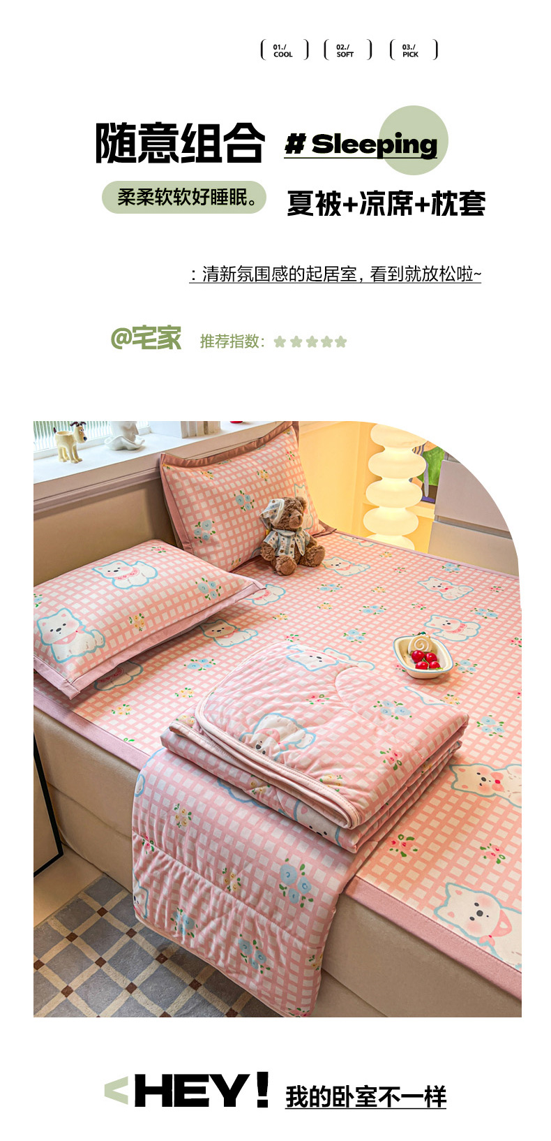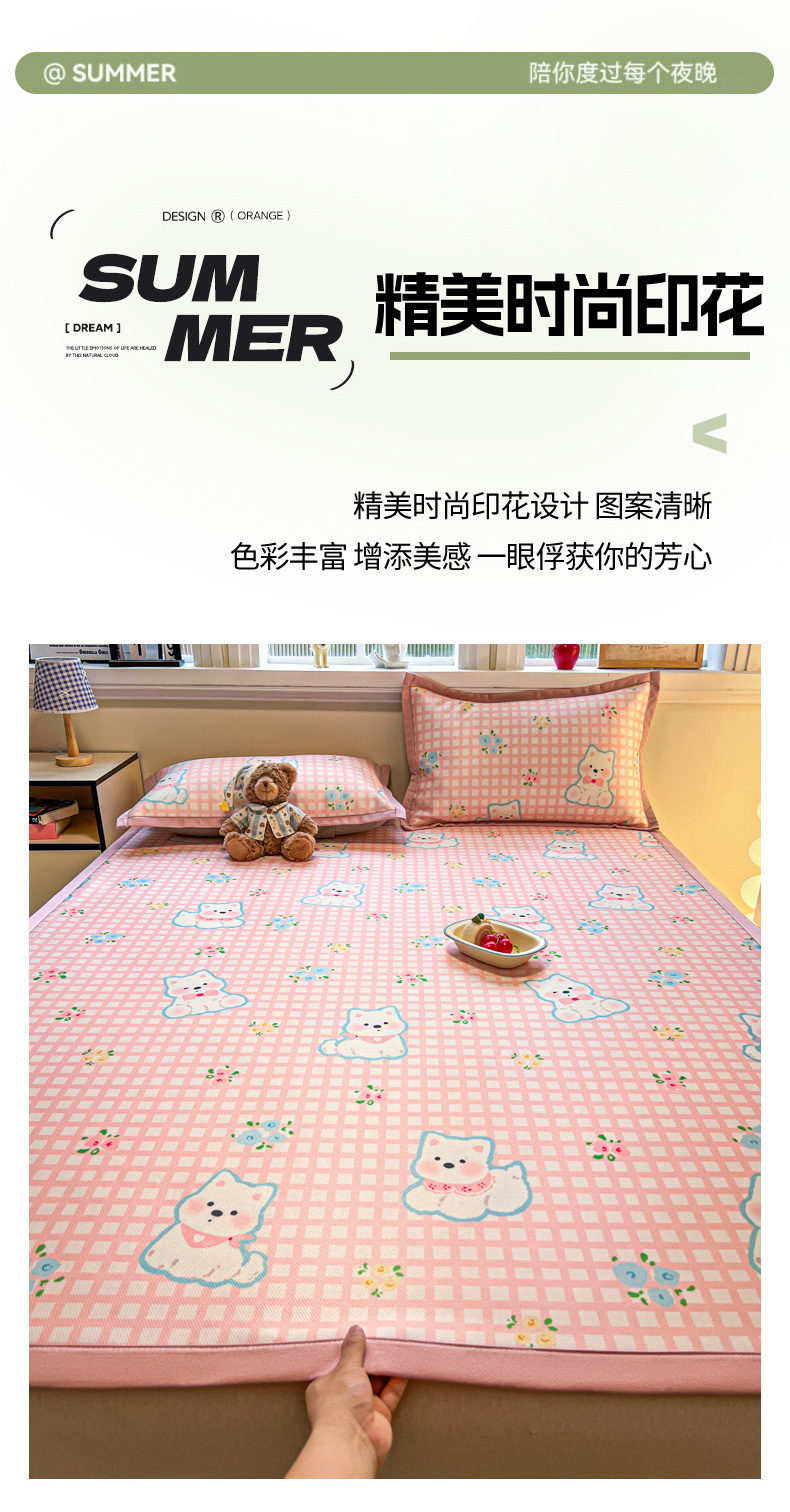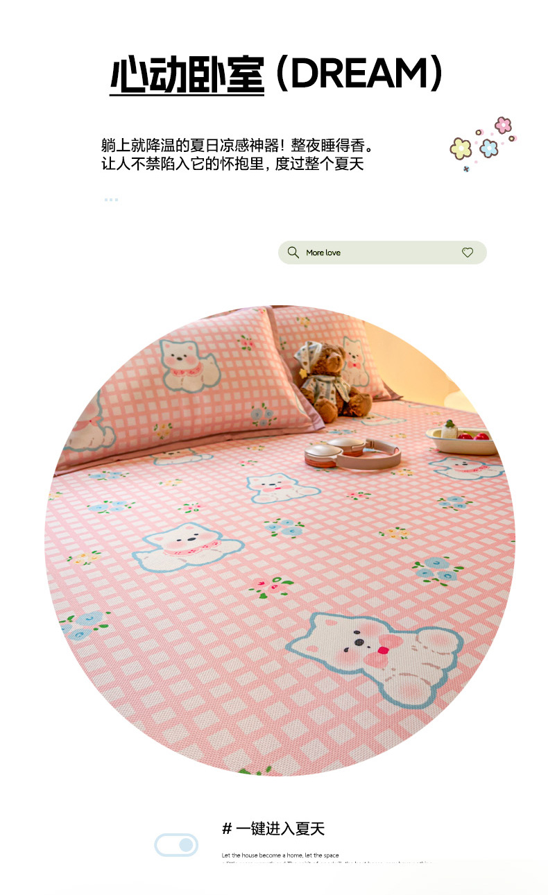 (总)女子家纺 2026新款大斜纹复合冰丝凉席-床笠款,爱心气泡粉-床笠款,萌熊印象-床笠款,奶油草莓-床笠款,拈花湾蓝-床笠款,七彩龙-床笠款,奇妙幻想-床笠款,水木年华-床笠款,午后茶花-床笠款,悠悠小元-床笠款,尤克克里粉-床笠款