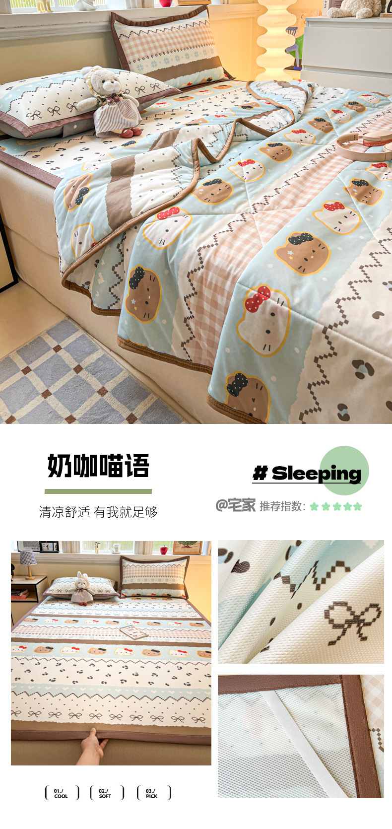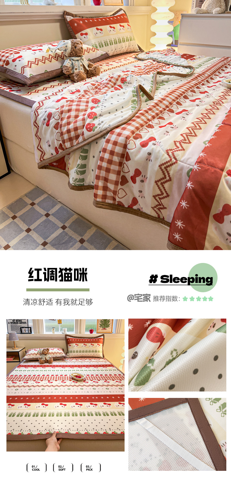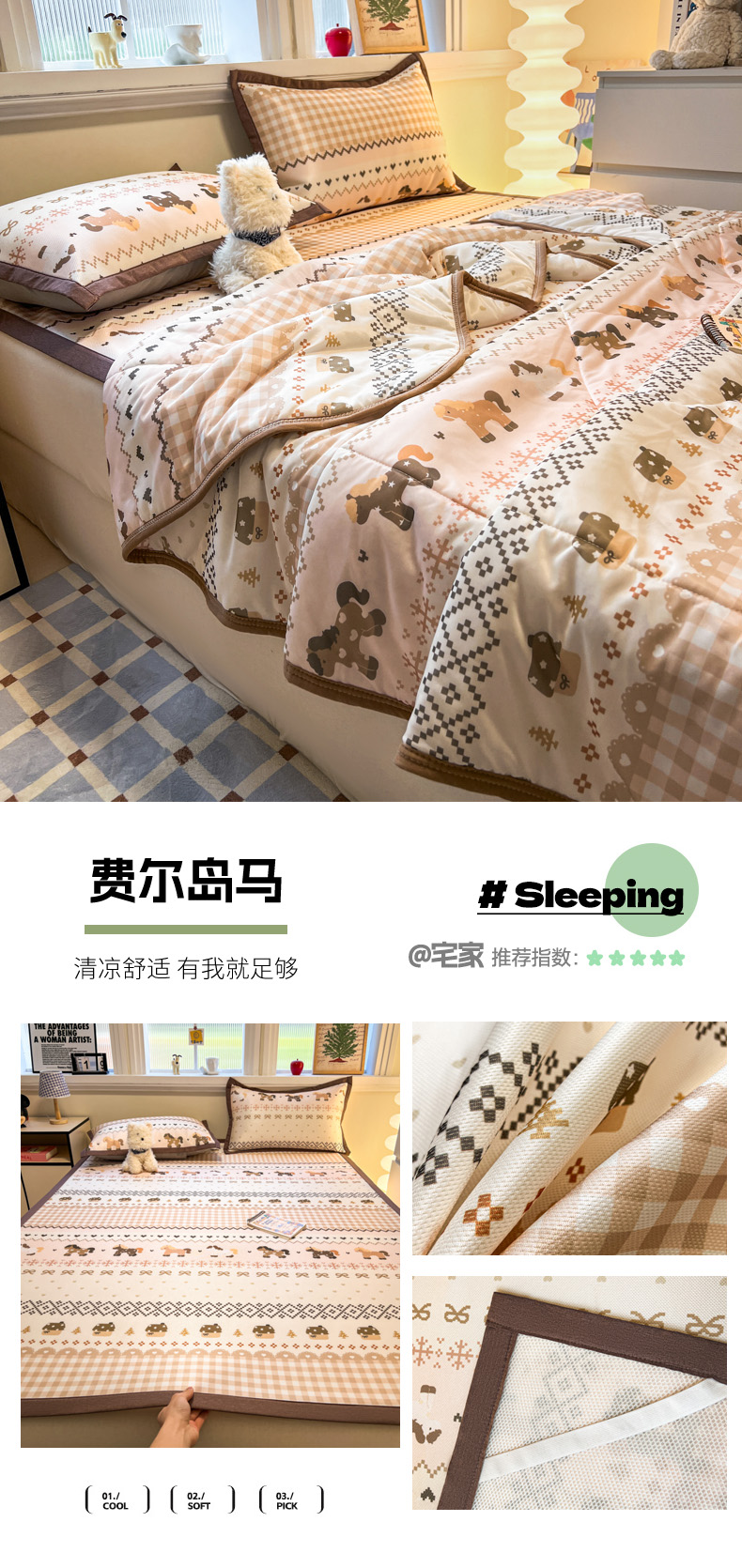 (总)女子家纺 2026新款费尔岛风冰丝凉席夏被套件系列,费尔岛马,粉格西高,红调猫咪,蓝兔奶冻,奶咖喵语,甜心凯蒂,夏日海星,叶叶兔眠
