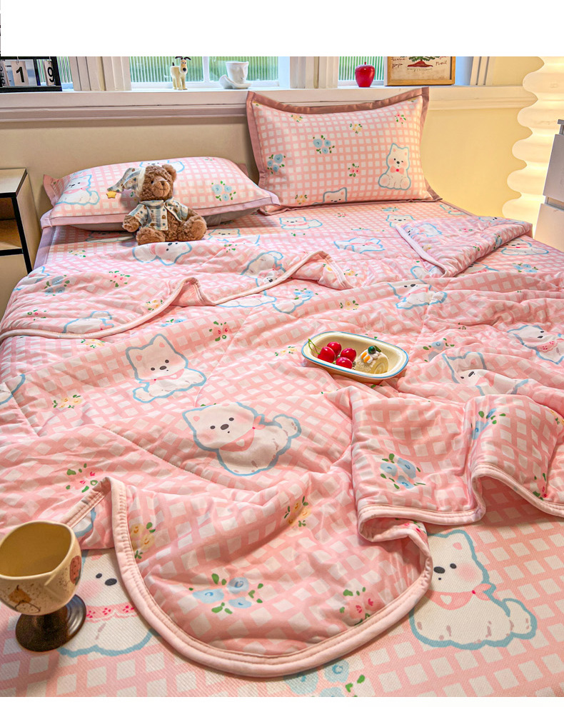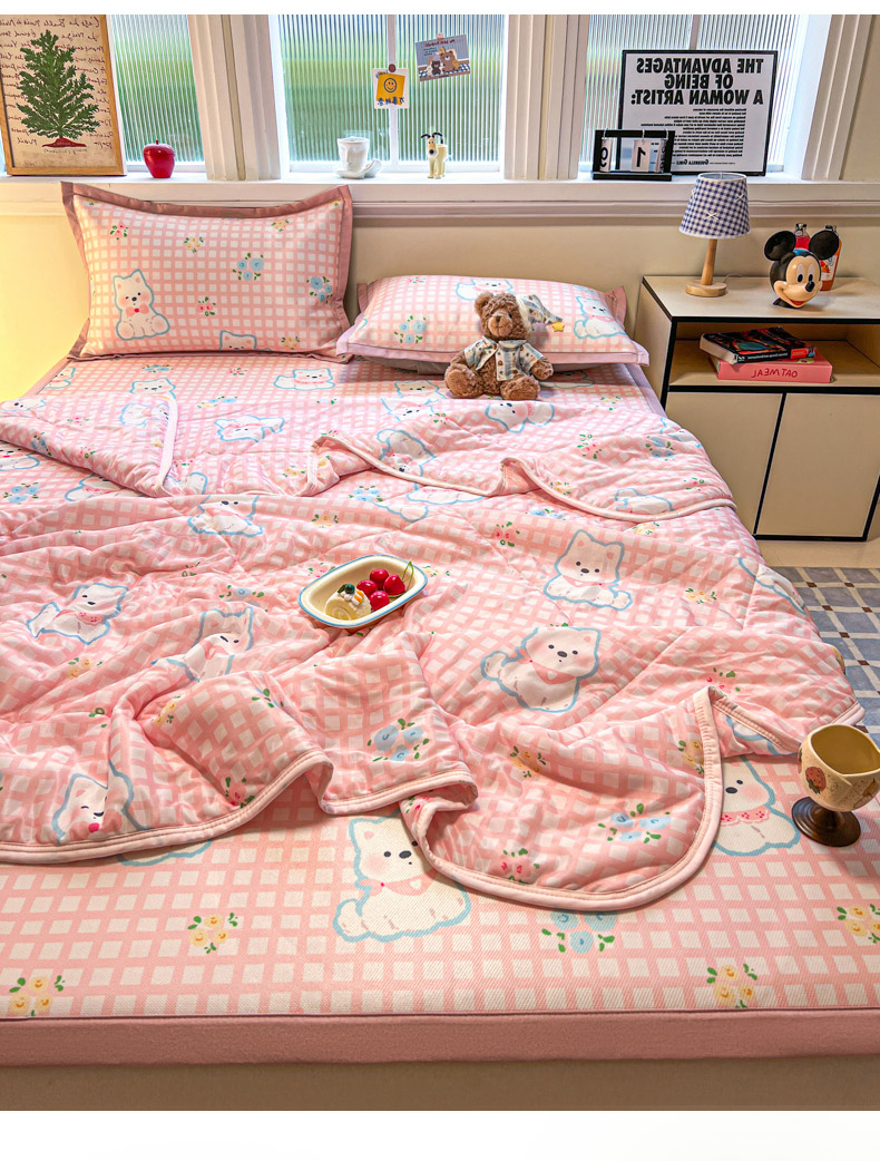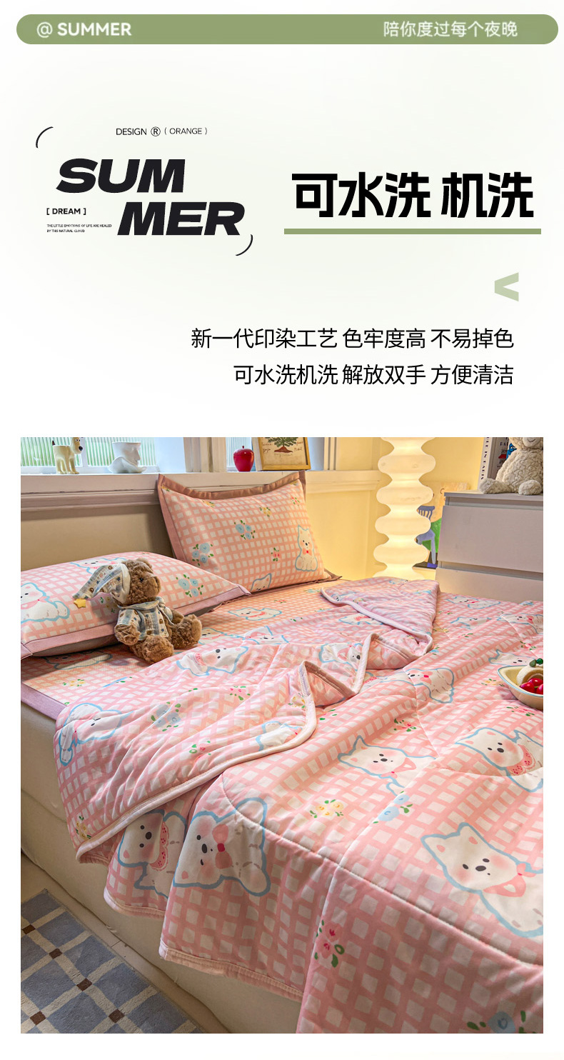 (总)女子家纺 2026新款费尔岛风冰丝凉席夏被套件系列,费尔岛马,粉格西高,红调猫咪,蓝兔奶冻,奶咖喵语,甜心凯蒂,夏日海星,叶叶兔眠