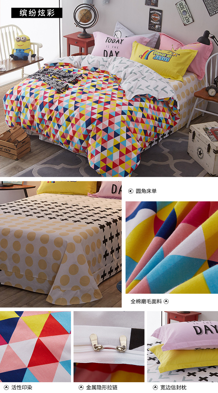 芃成家纺 活性磨毛混搭四件套缤纷炫彩