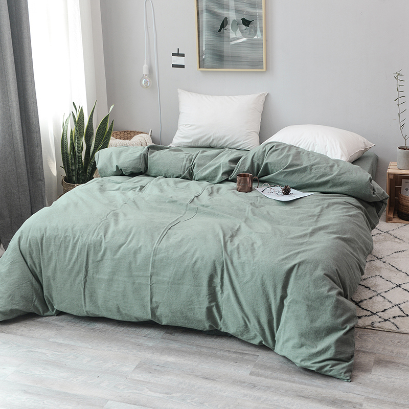 柠萌家居 全棉色织水洗棉单被套 一抹绿