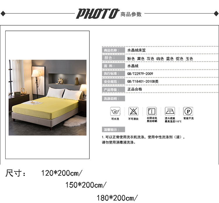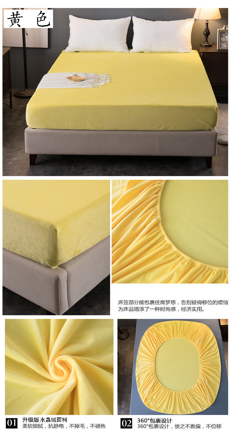商品名称:怡家居 2018新款水晶绒加厚保暖单品床笠 黄色