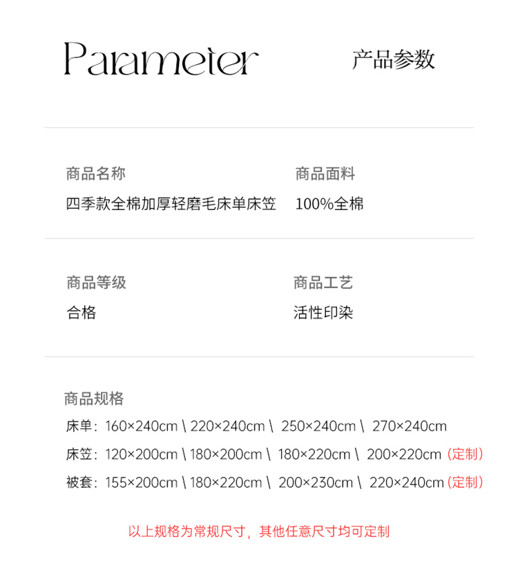 商品名称:(总)宝莱利家纺 2025全棉100棉四季款A类纯色加厚高密度轻磨毛床单床笠一件定制