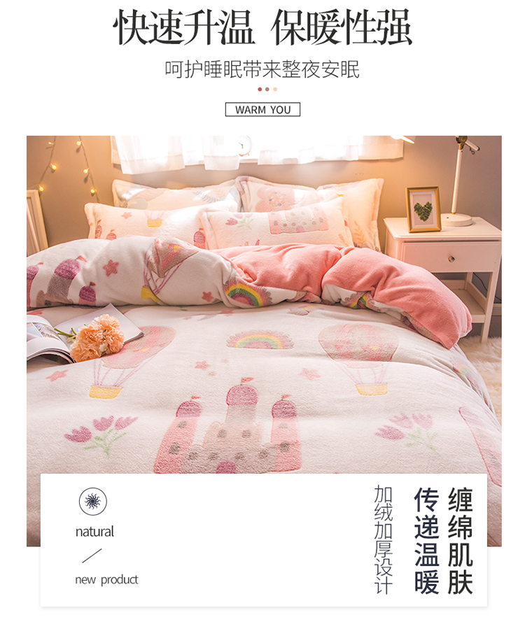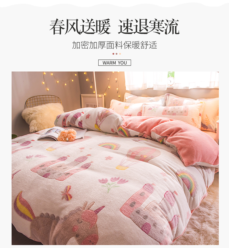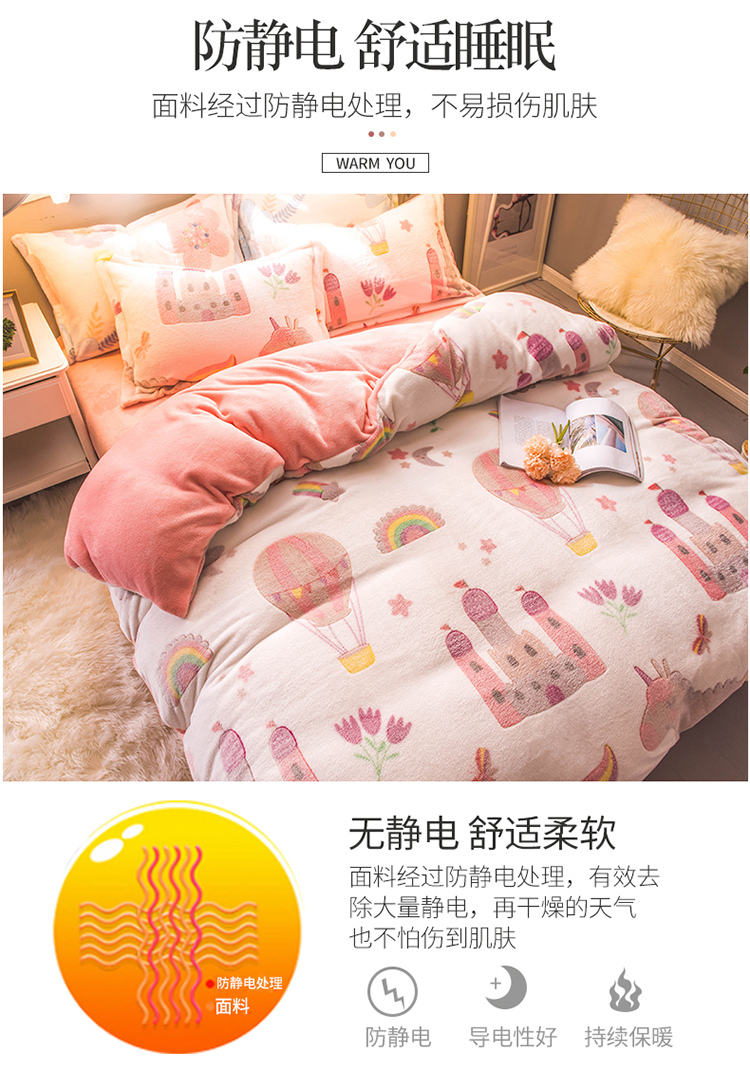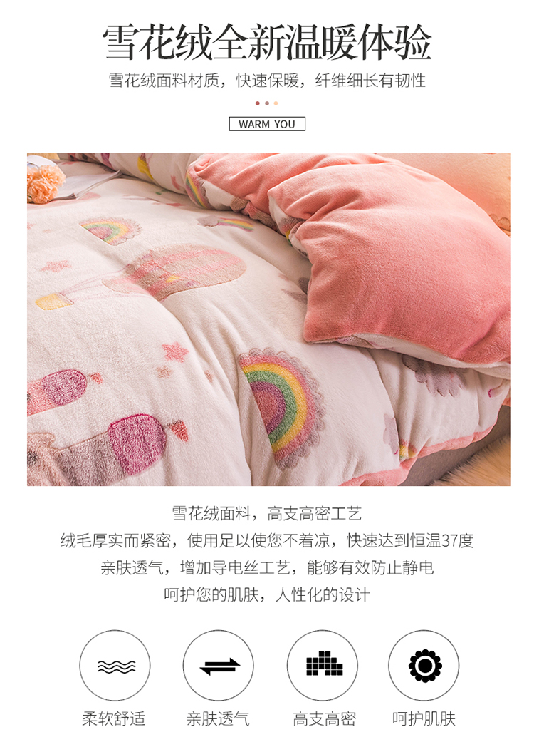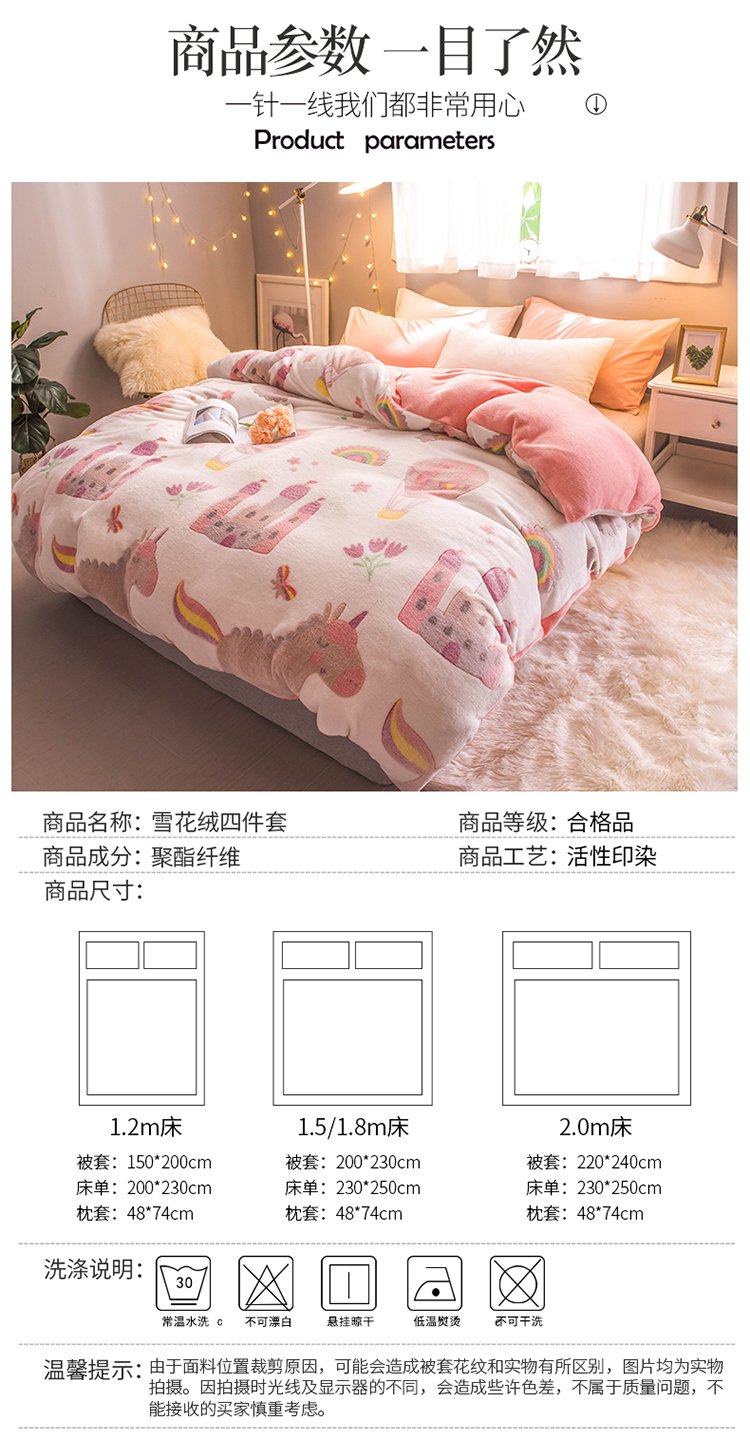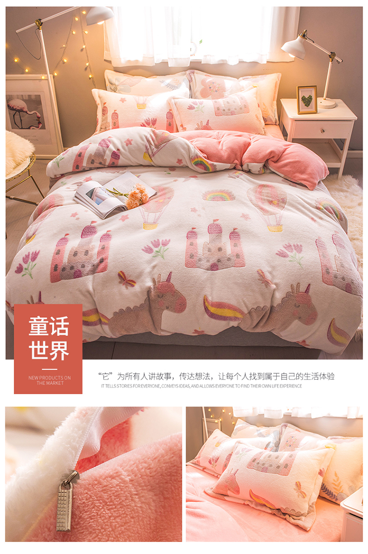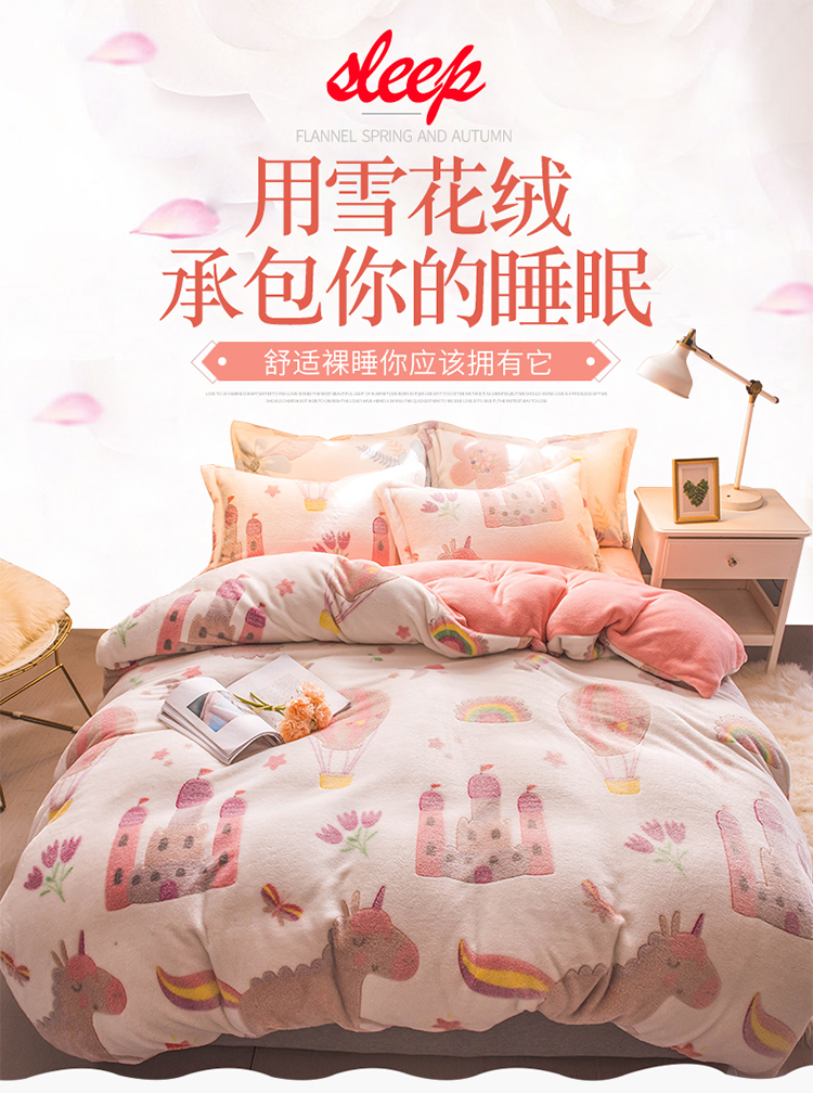 商品名称:懒猫家纺 2020新款立体雪花绒法莱绒水晶绒四件套童话世界