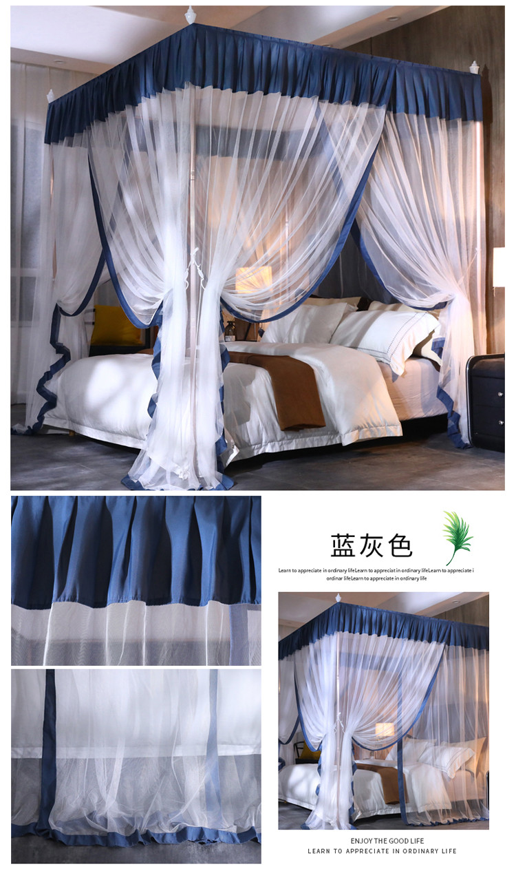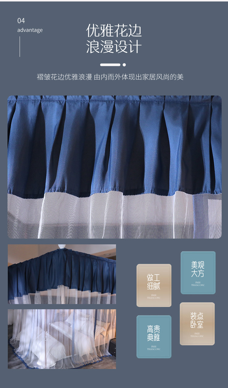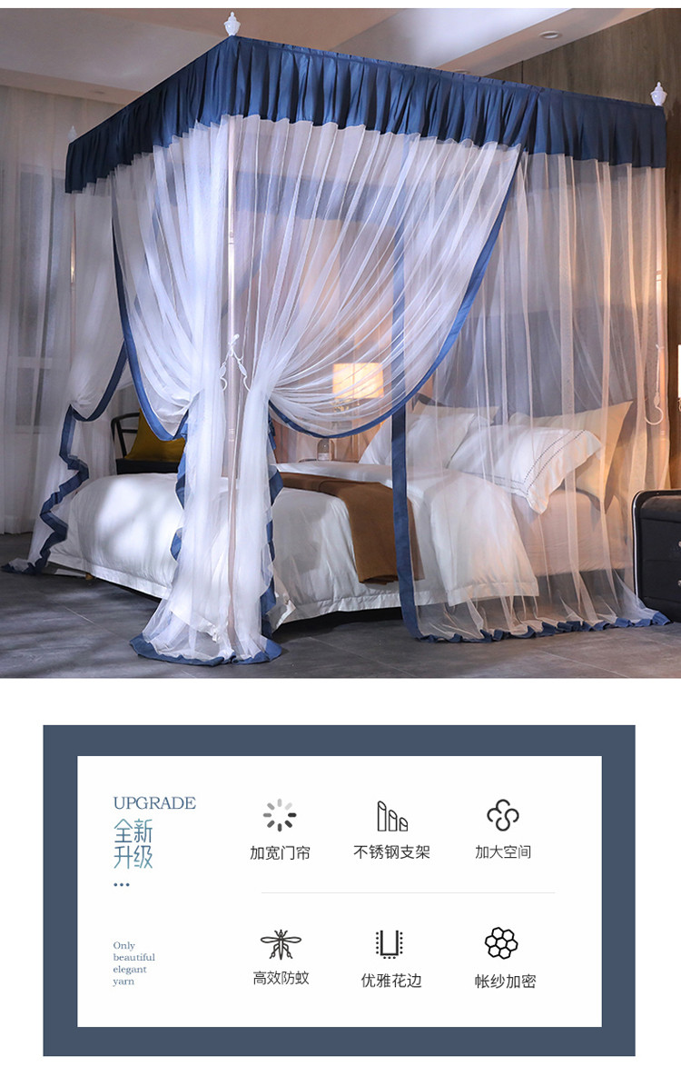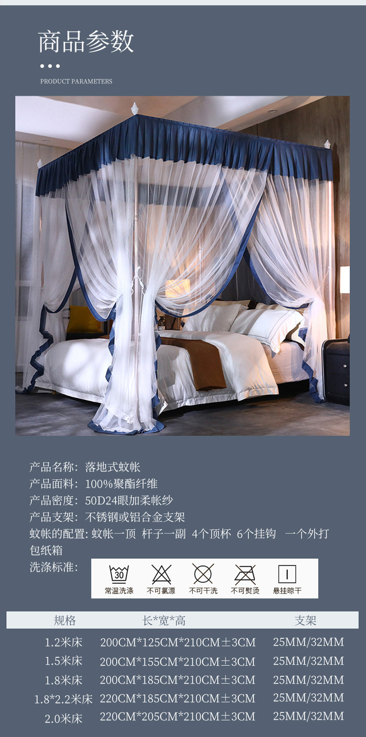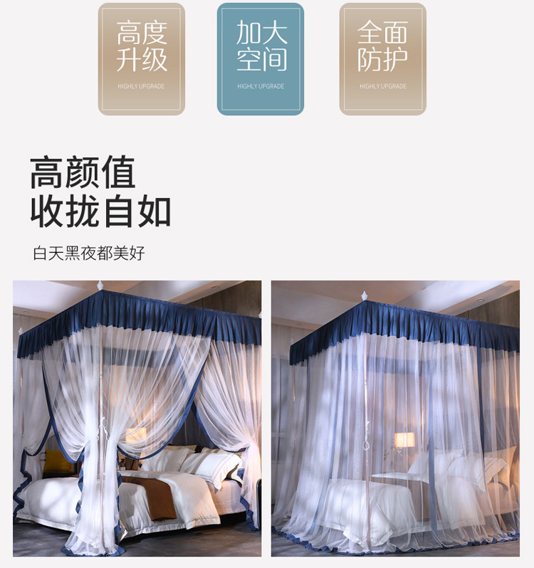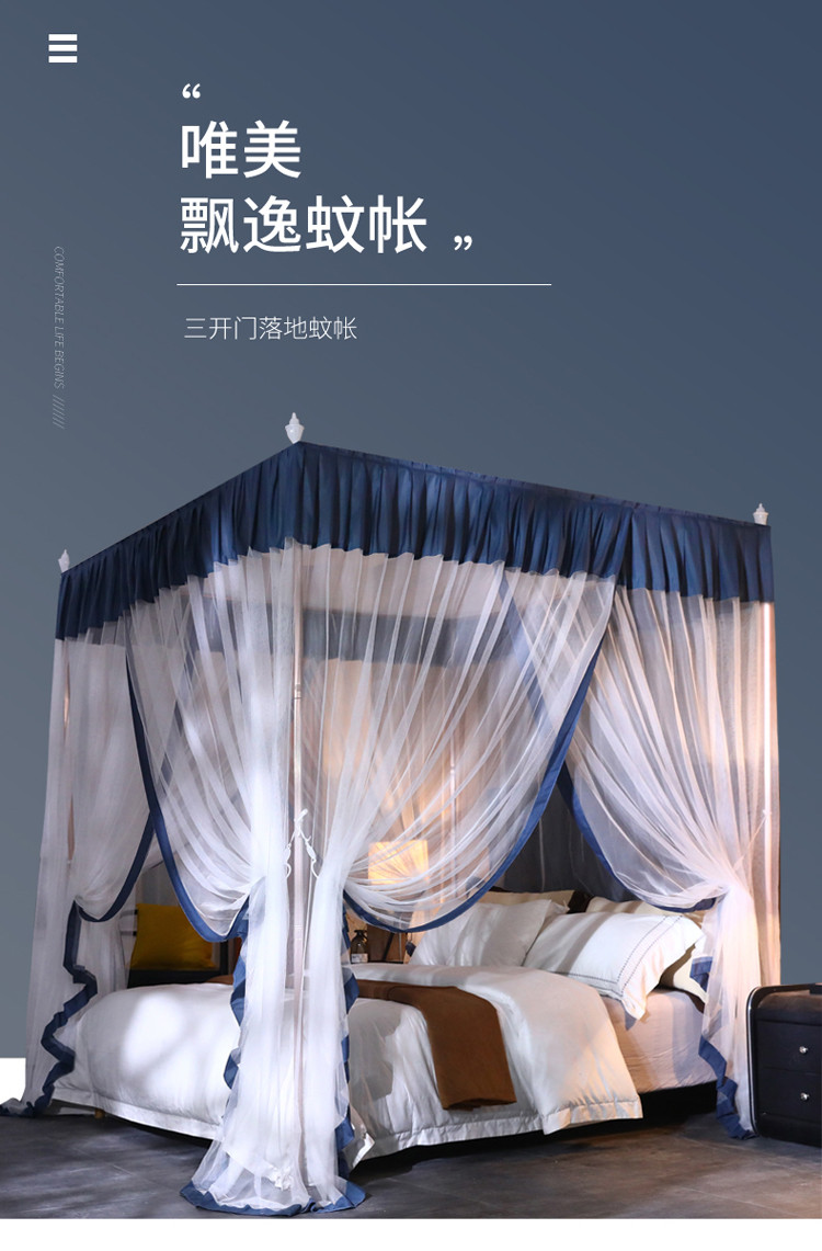 (总)海虹蚊帐 2025新款2505款一体防尘顶落地宫廷蚊帐,简约蓝,简约玉,蓝边,浅灰边,山水白,条纹白