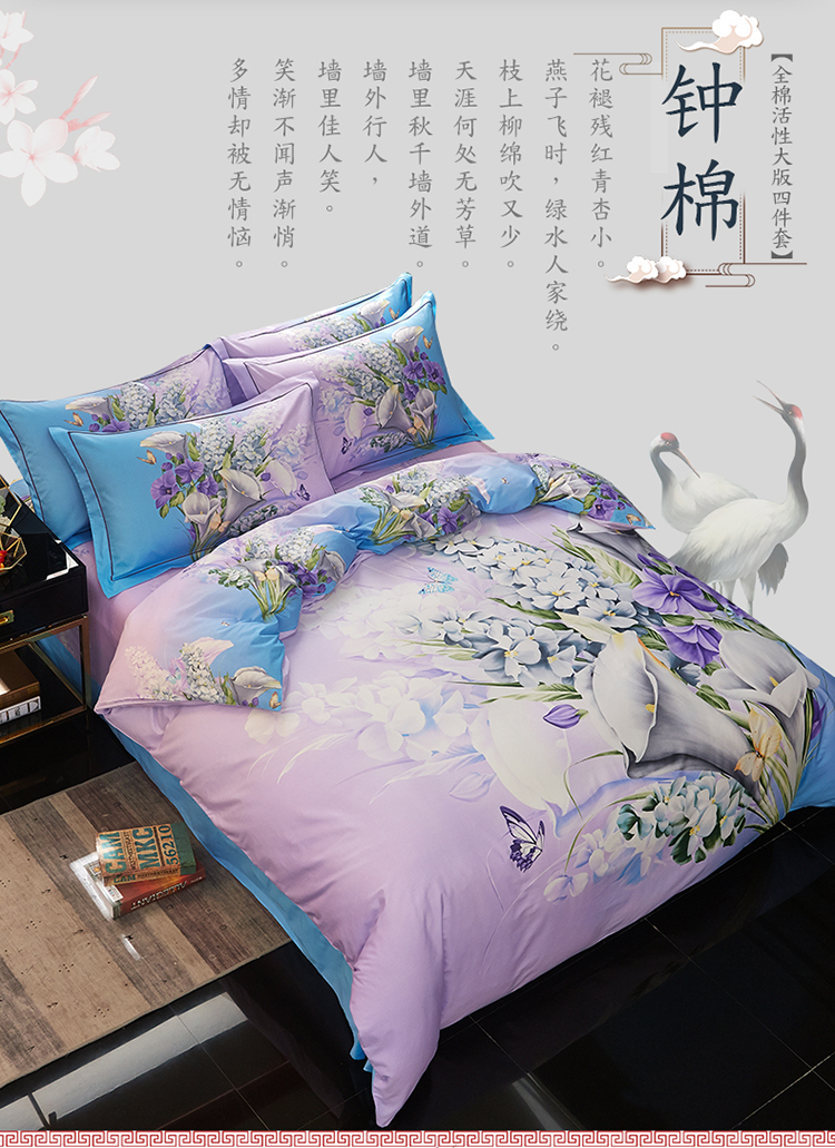 商品名称:雲归梦 2019全棉活性大版中国风花卉四件套 暖暖时代